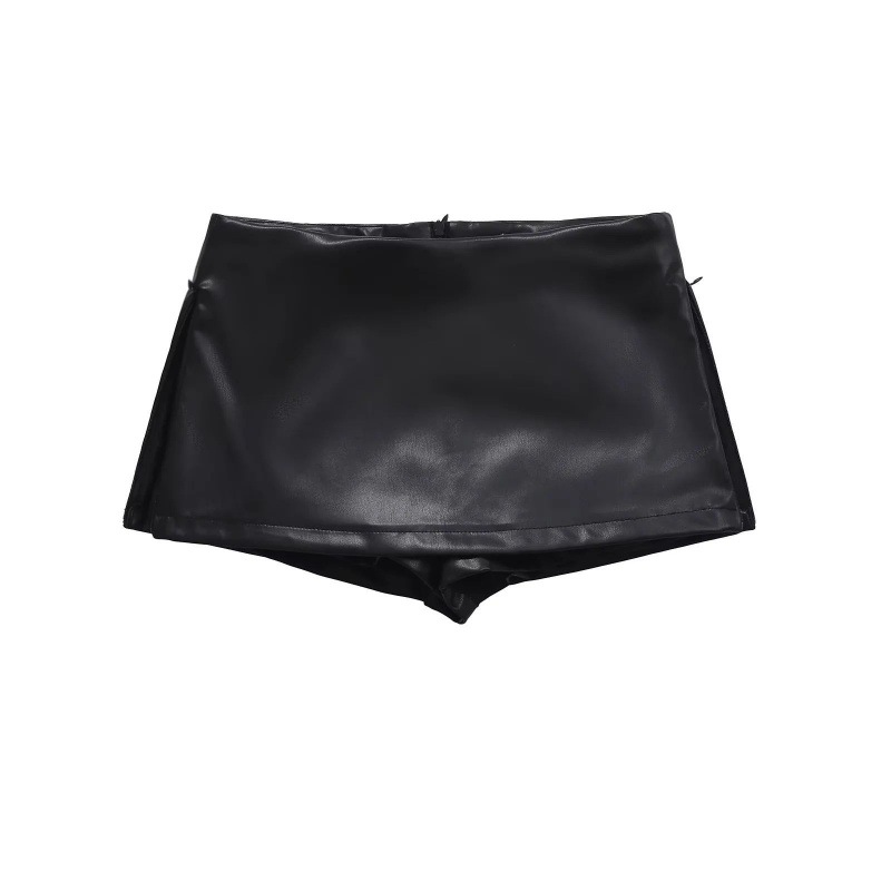 낮은 허리 더블 스플릿 가죽 스커트 이른 가을 스파이스 소녀 섹시한 단단한 엉덩이 안티 패자 A-라인 미니 스커트 짧은 치마