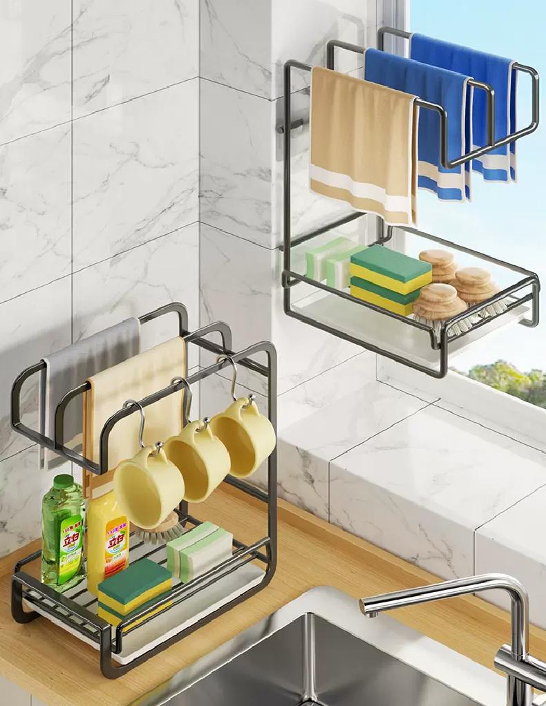 랙 랙 주방 배수 랙 펀치없는 카운터 탑 벽 교수형 스폰지 수건 주방 용품 보관 랙 보관 선반