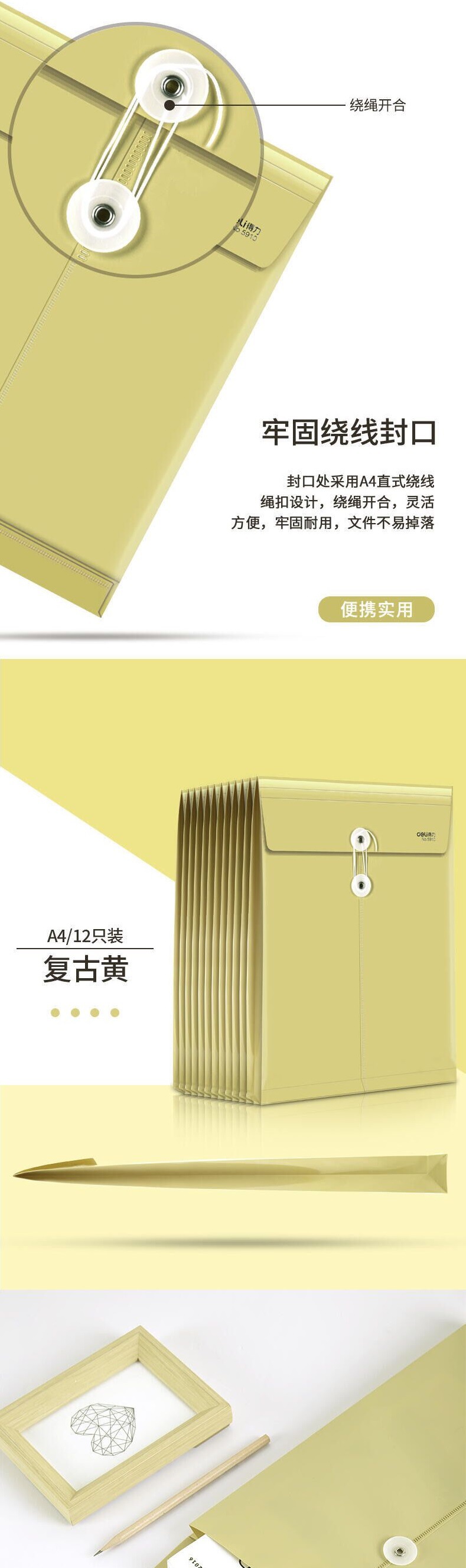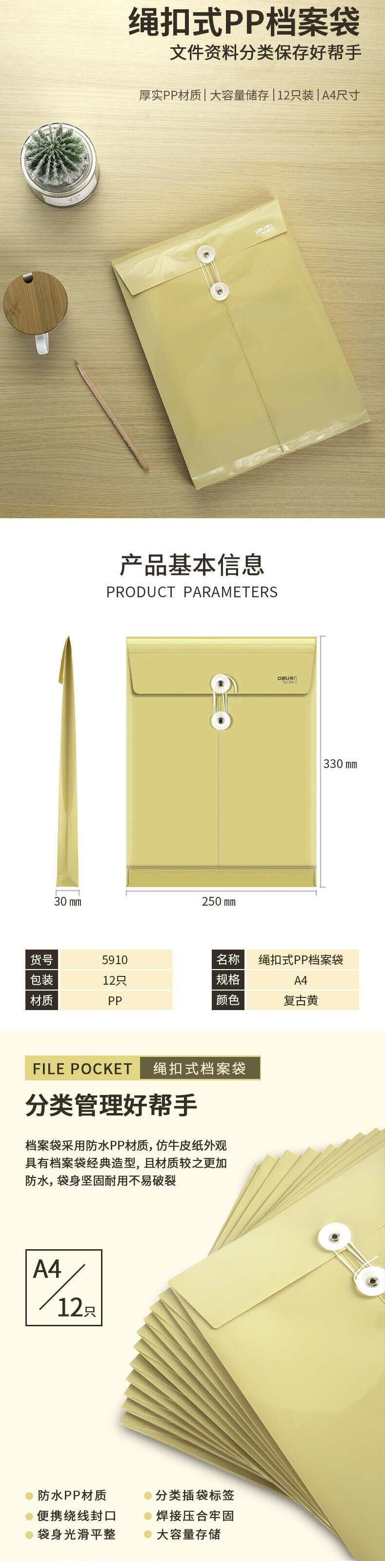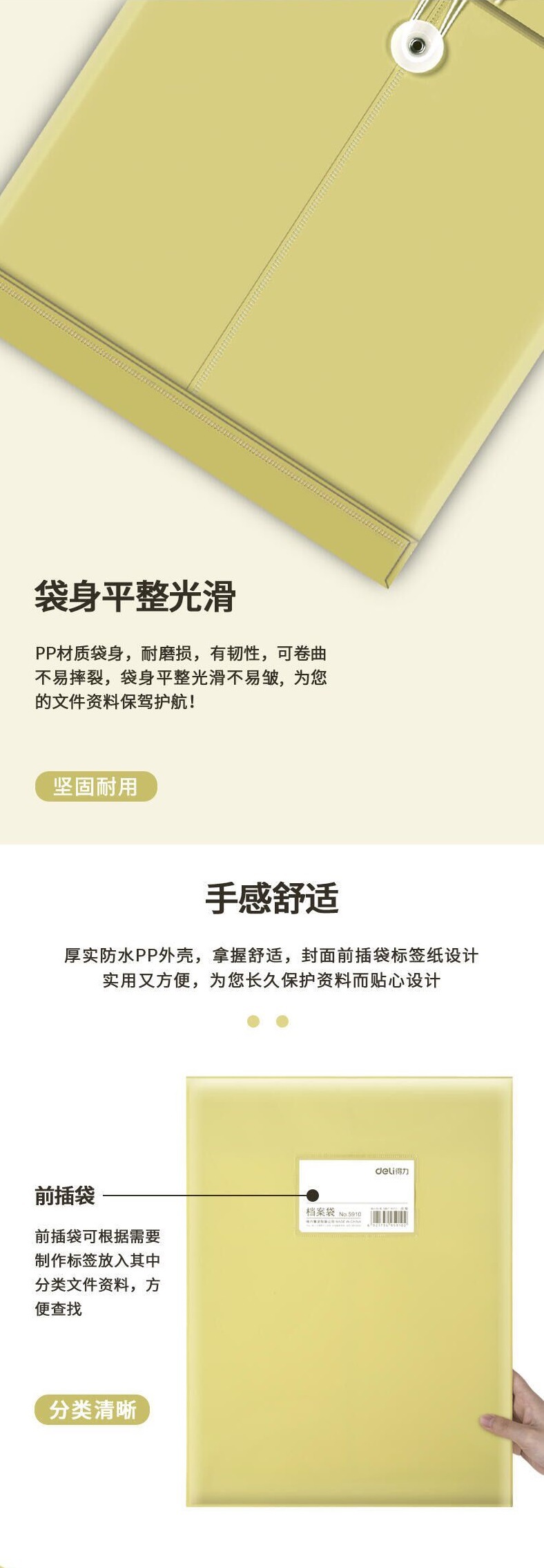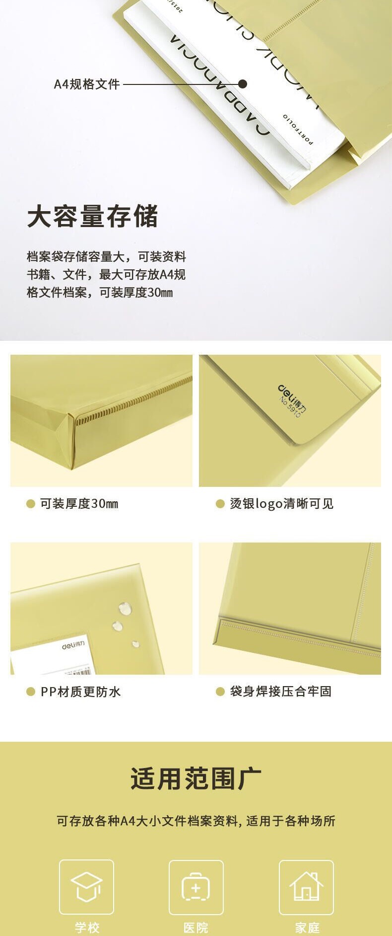 델리 5910 플라스틱 파일 가방 크래프트 컬러 PP 파일 가방 정보 가방 보관 노란색 서류 가방 회의 가방스토어 가기
