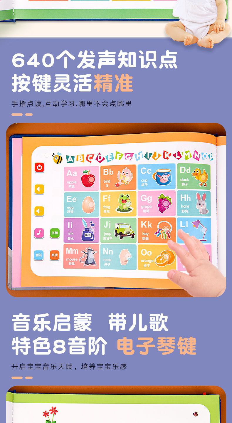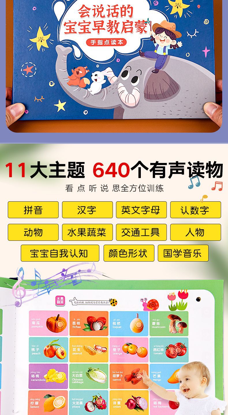 유아 손가락 포인트 읽기 음성 책 교육 장난감을 읽는 어린 아이들을위한 조기 교육 오디오 북 학습 기계스토어 가기