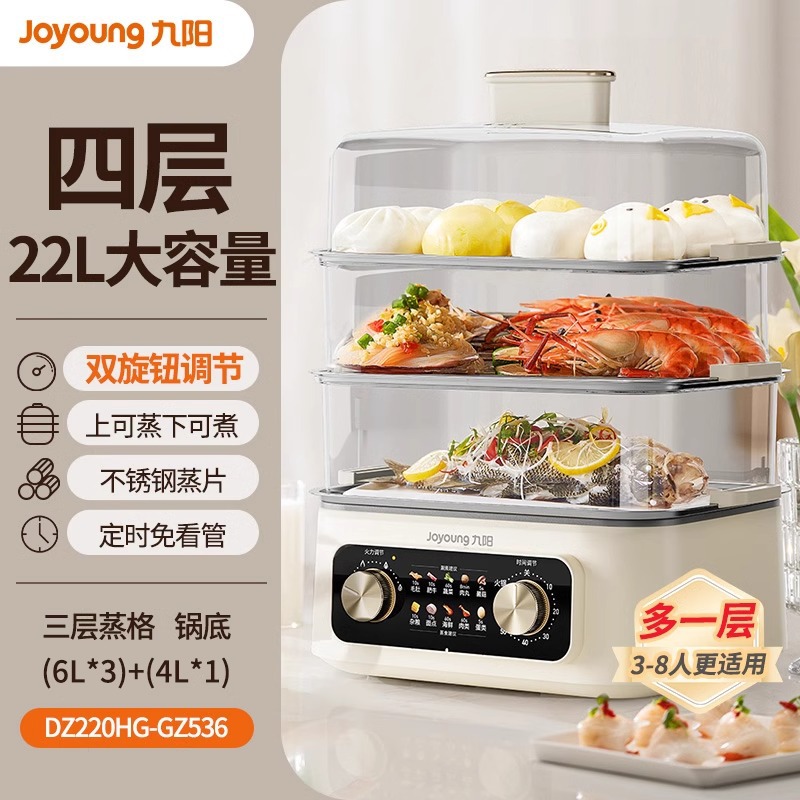 Jiuyang 전기 증기선 22L 3 층 전기 증기선 다기능 증기 밥솥 스테인레스 스틸 증기선 DZ220HG-GZ536스토어 가기