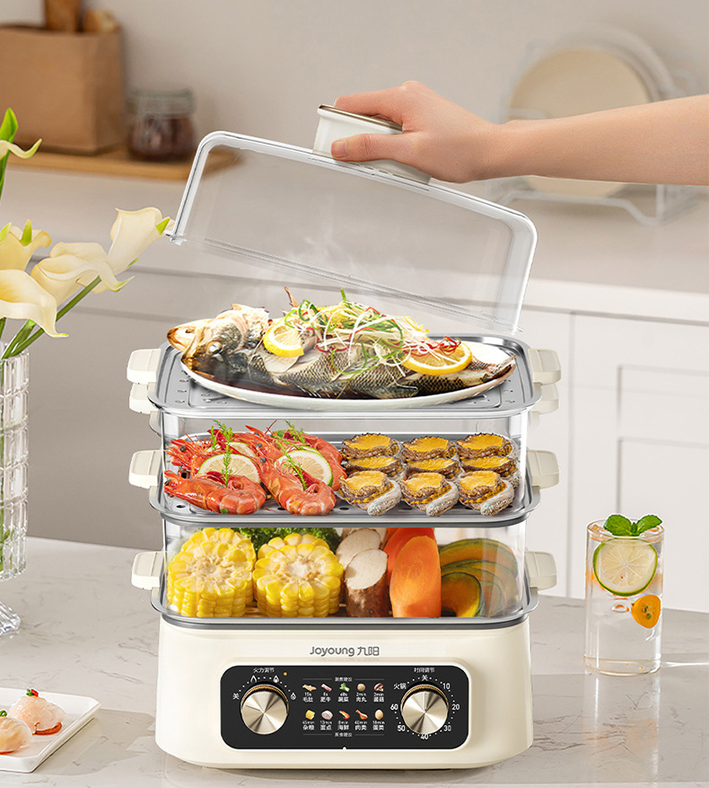 Jiuyang 전기 증기선 22L 3 층 전기 증기선 다기능 증기 밥솥 스테인레스 스틸 증기선 DZ220HG-GZ536