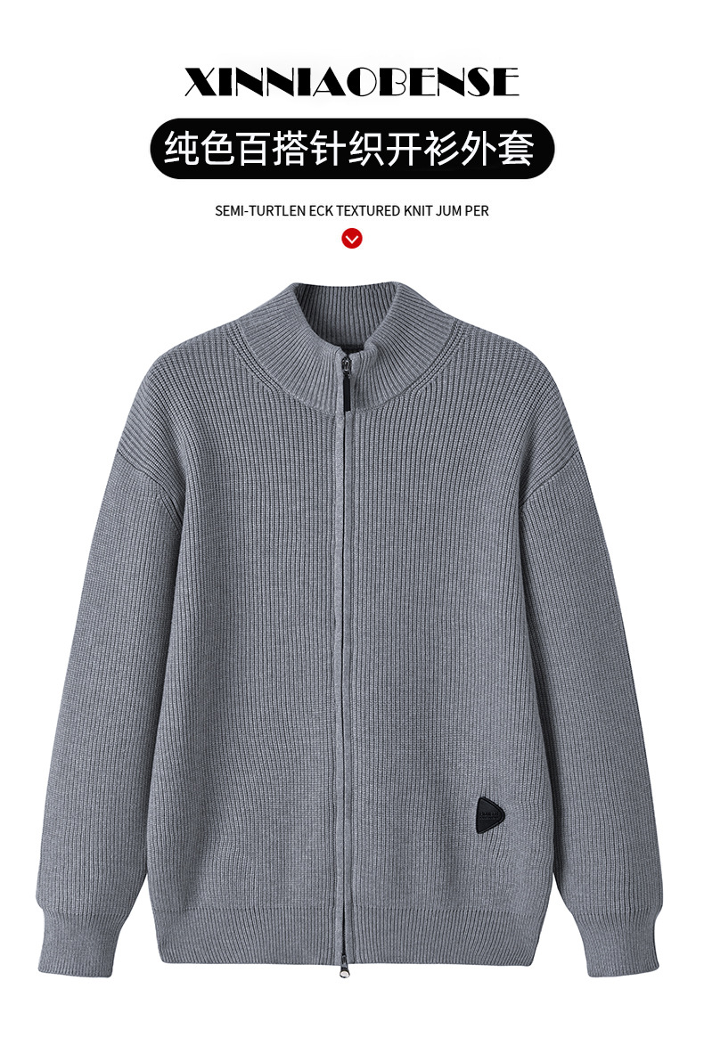 가을과 겨울 새로운 두꺼운 니트 카디건 남성용 수직 칼라 지퍼 솔리드 컬러 스웨터 간단한 유행 재킷스토어 가기