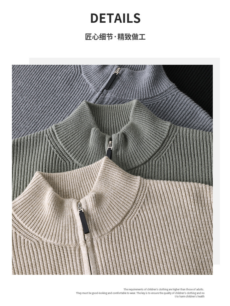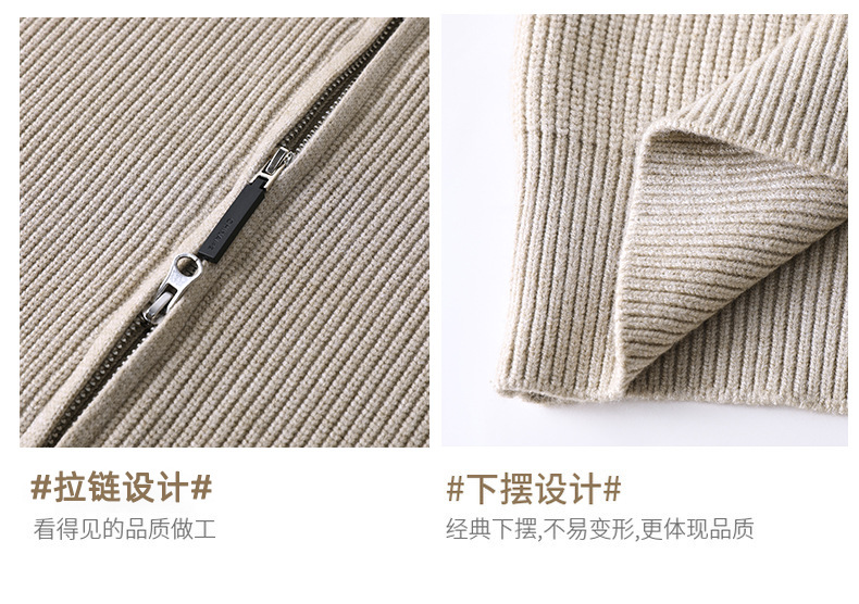 가을과 겨울 새로운 두꺼운 니트 카디건 남성용 수직 칼라 지퍼 솔리드 컬러 스웨터 간단한 유행 재킷