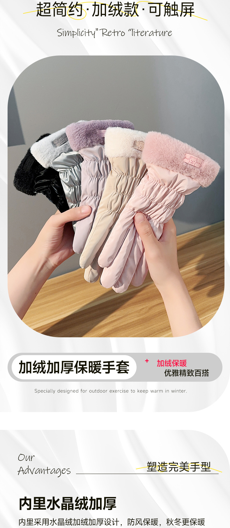 여성을위한 새로운 유행 가을, 겨울 따뜻한 장갑 벨벳 두꺼운 겨울 야외 사이클링 스포츠 방풍 터치 스크린