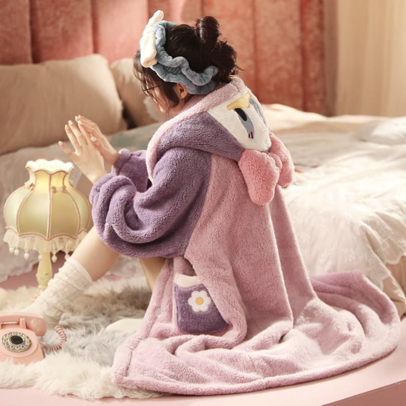 엄선된 여성용 겨울 2025 귀여운 긴 벨벳 두꺼운 잠옷 산호 벨벳 잠옷과 같은 만화 잠옷