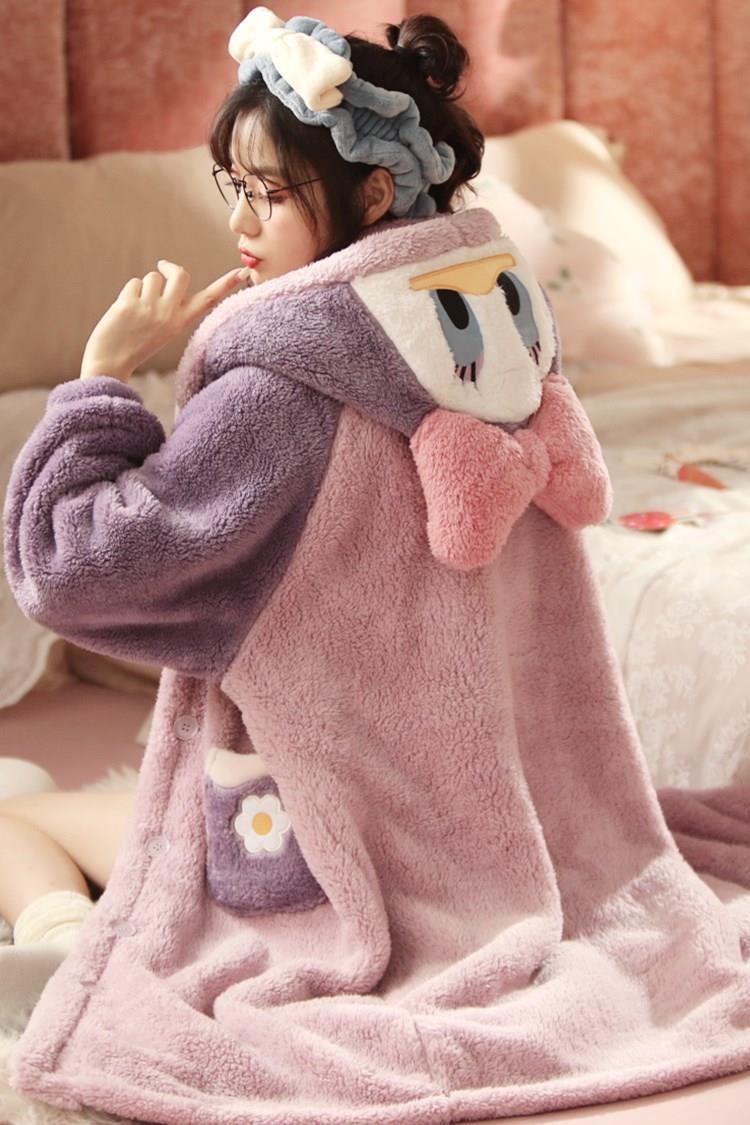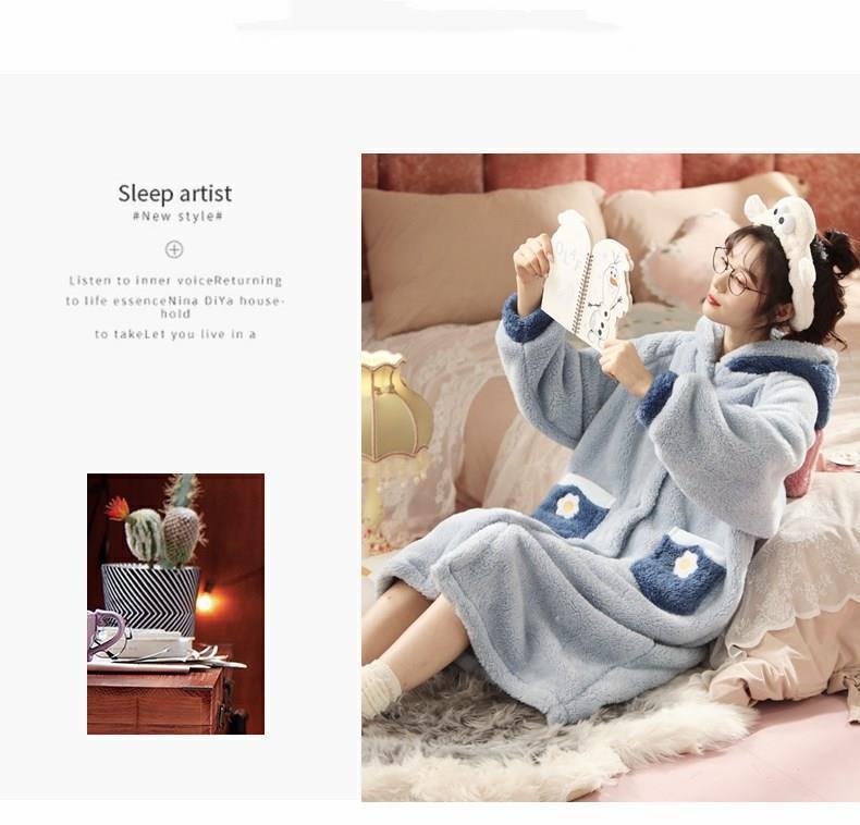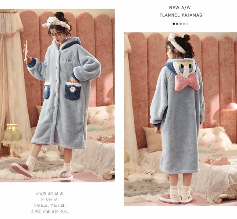 엄선된 여성용 겨울 2025 귀여운 긴 벨벳 두꺼운 잠옷 산호 벨벳 잠옷과 같은 만화 잠옷스토어 가기