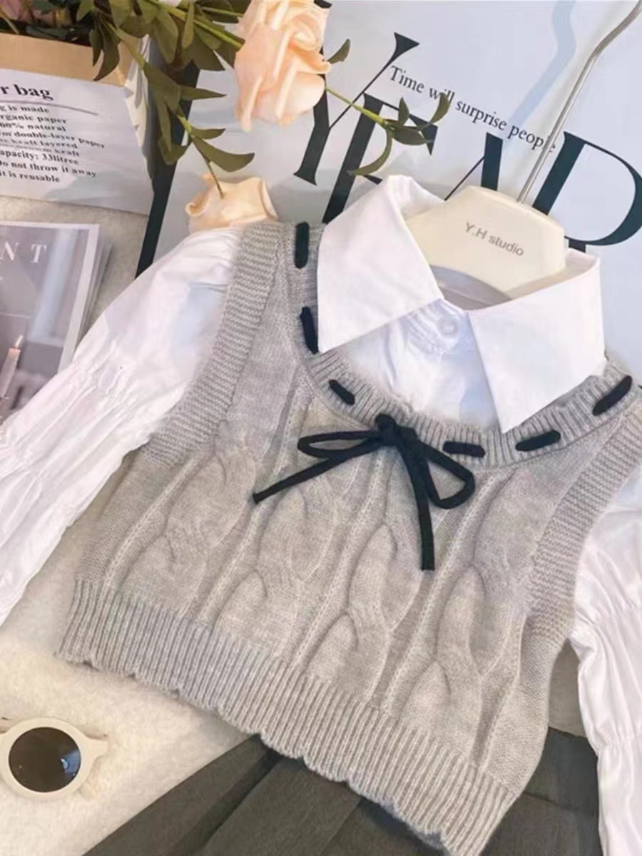• 3종 세트 [탑 + 스커트 + 니트조끼]