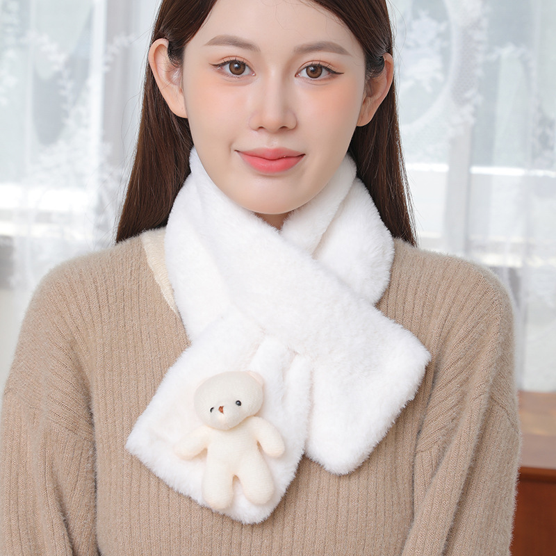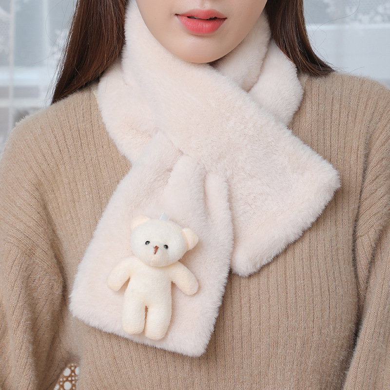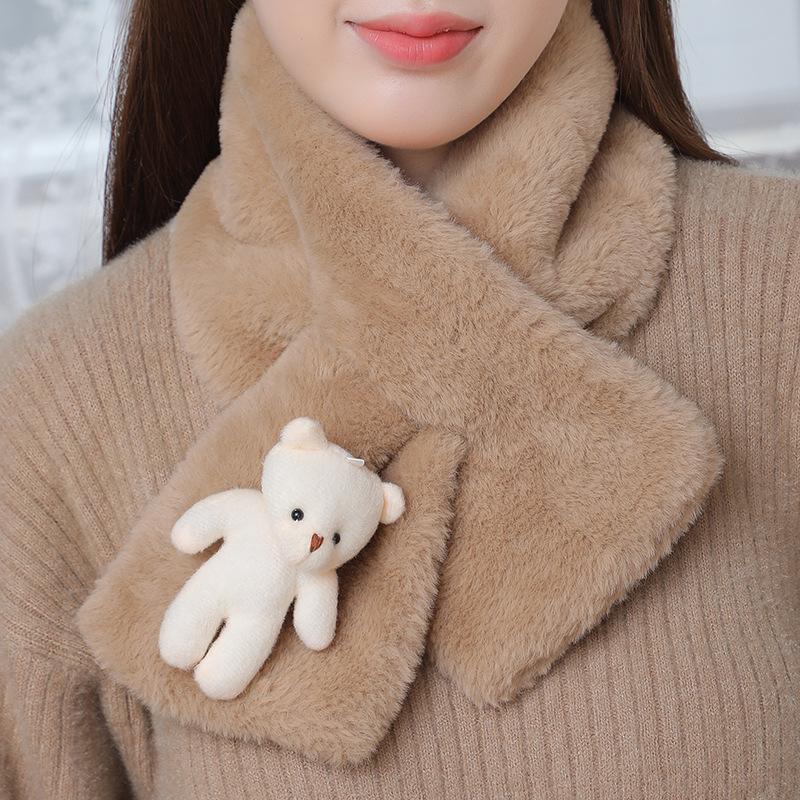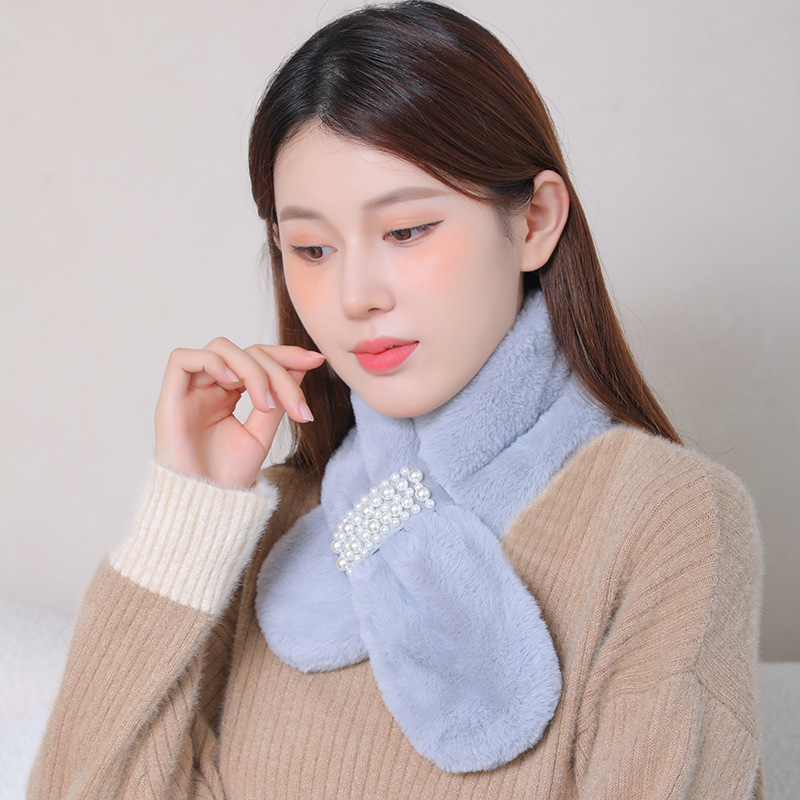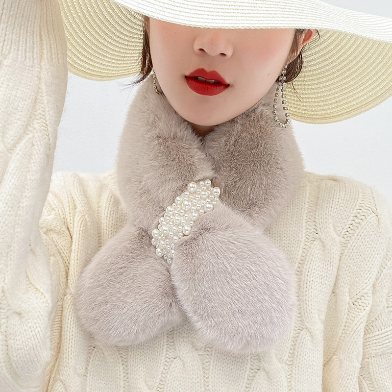스카프 여자 가을 · 겨울 한국식 학생 올매치 마오 따뜻한 모방 렉스 토끼 칼라 목 보호 목 소매 봉제 진주 스카프