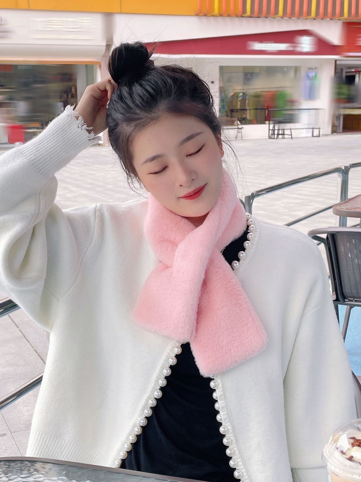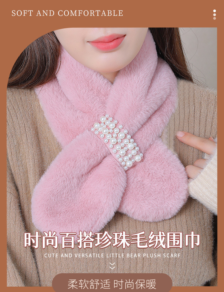 스카프 여자 가을 · 겨울 한국식 학생 올매치 마오 따뜻한 모방 렉스 토끼 칼라 목 보호 목 소매 봉제 진주 스카프스토어 가기