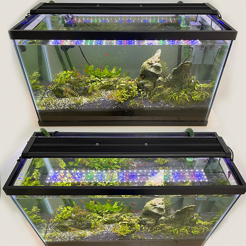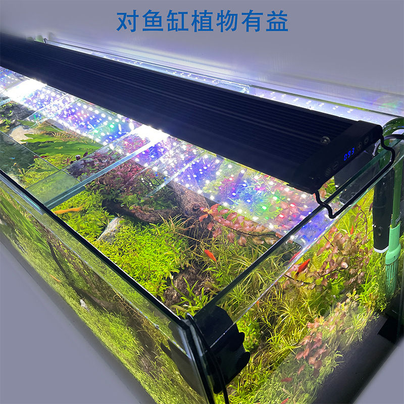 전체 스펙트럼 와이드 바디 LED 워터 잔디 램프 타이밍 디밍 밝은 수족관 램프 조명 디지털 디스플레이 방수 조류 폭발 램프