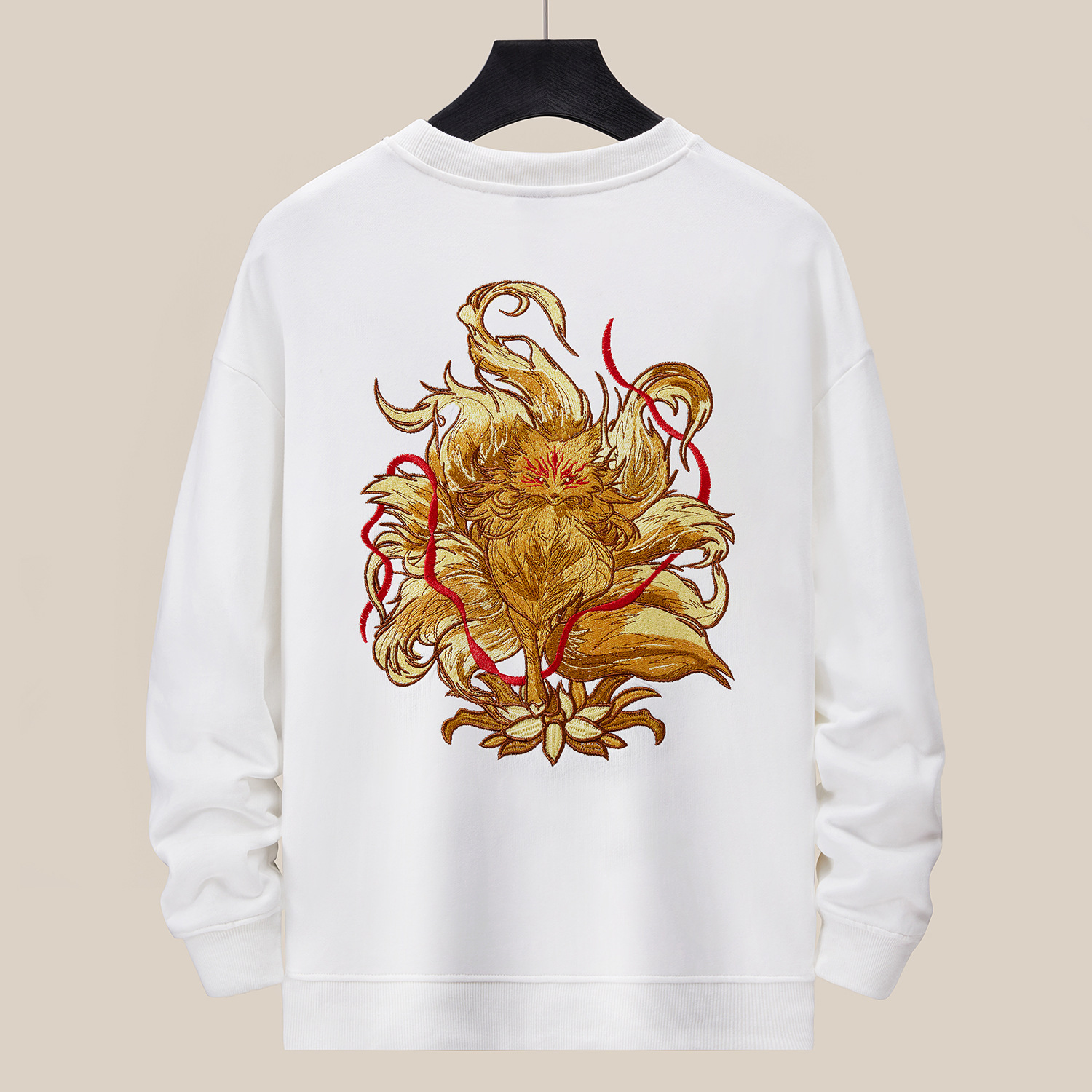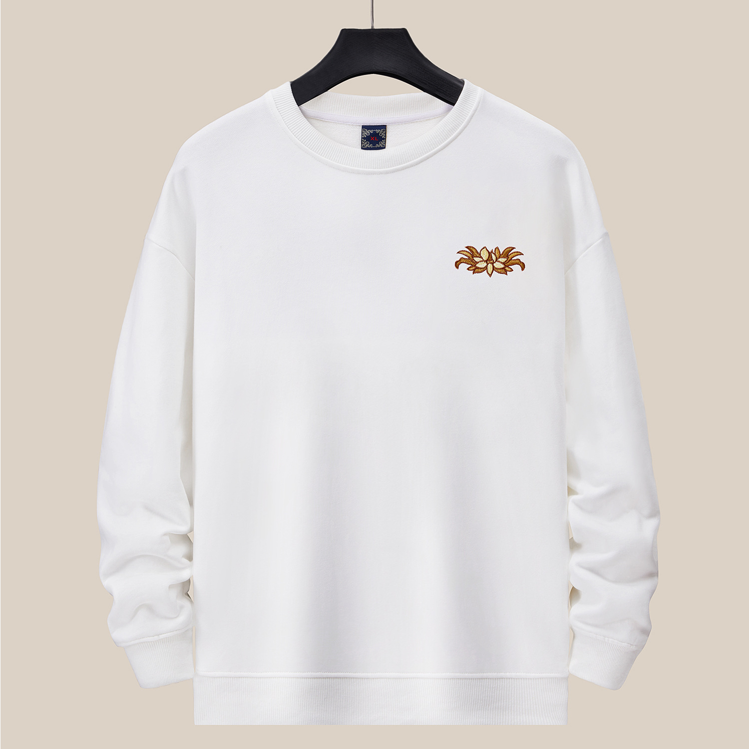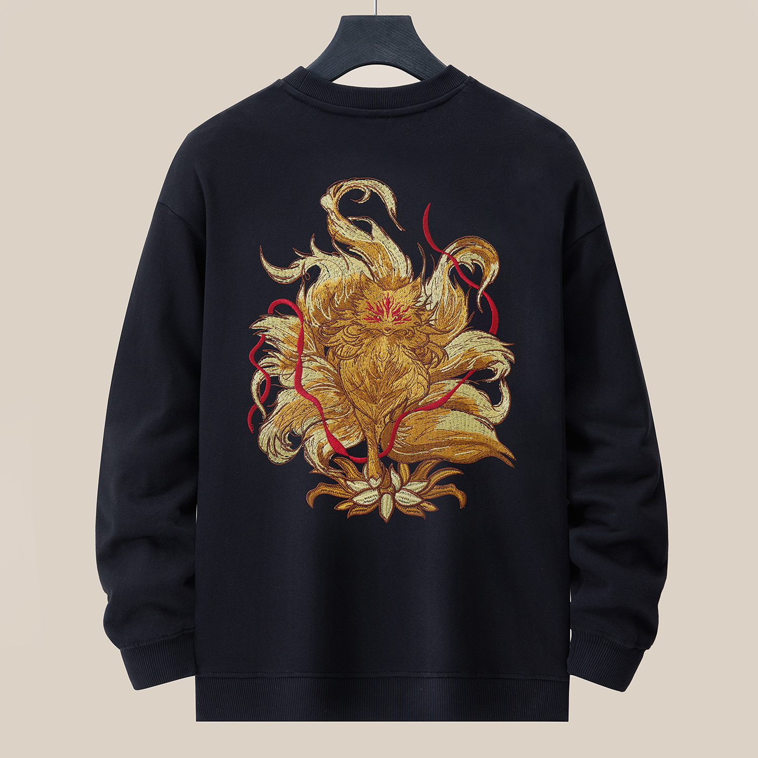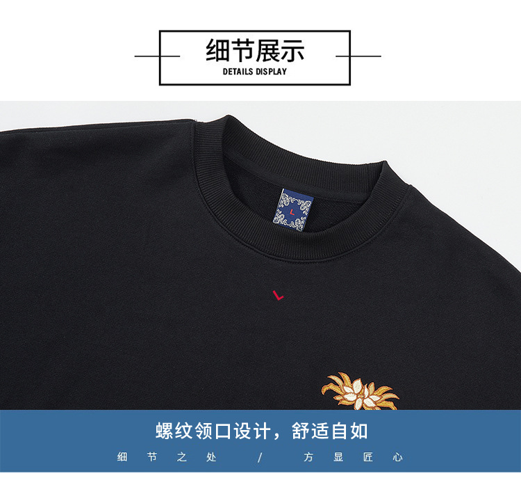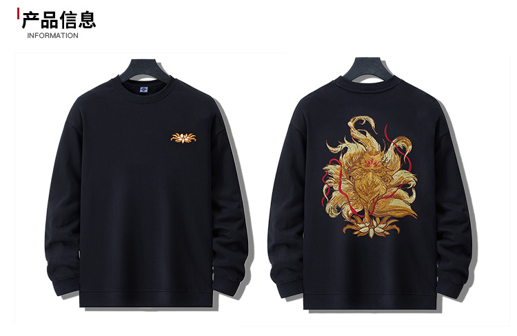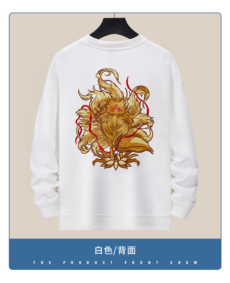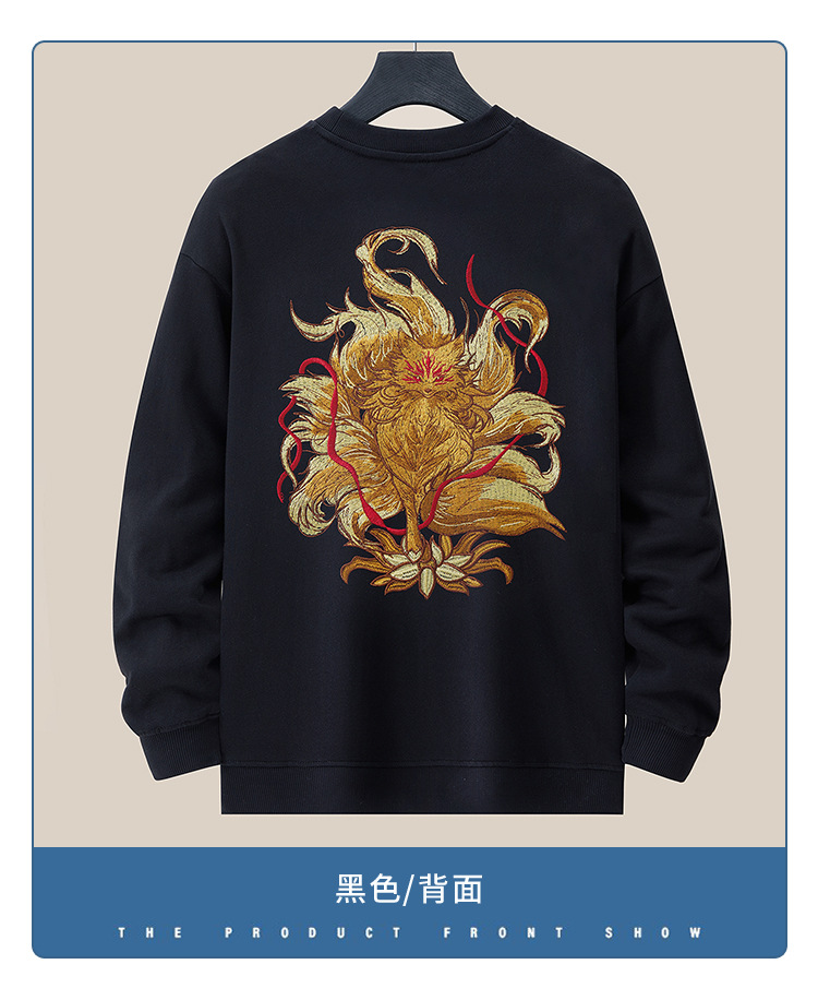 360g 가을/겨울 새로운 남성 크루 넥 땀 국가 조수 느슨한 플러스 사이즈 패션 조수 자수 면 긴 소매 탑