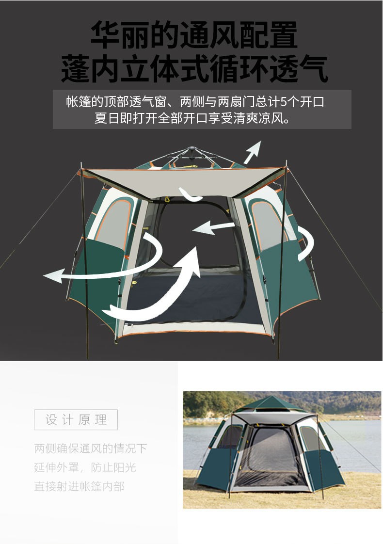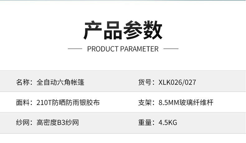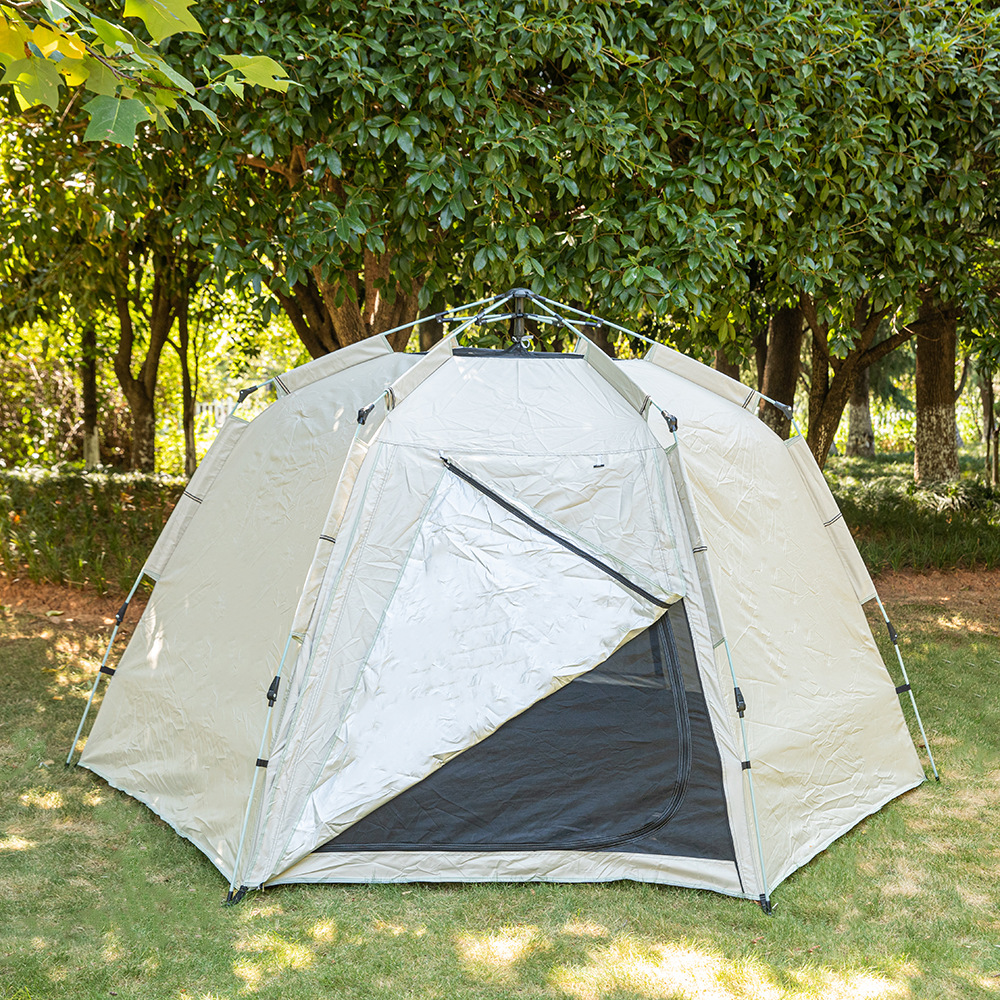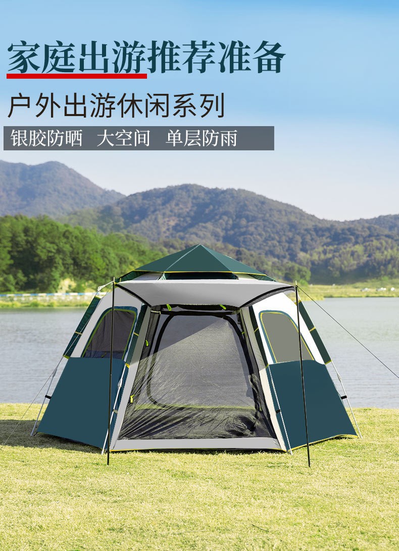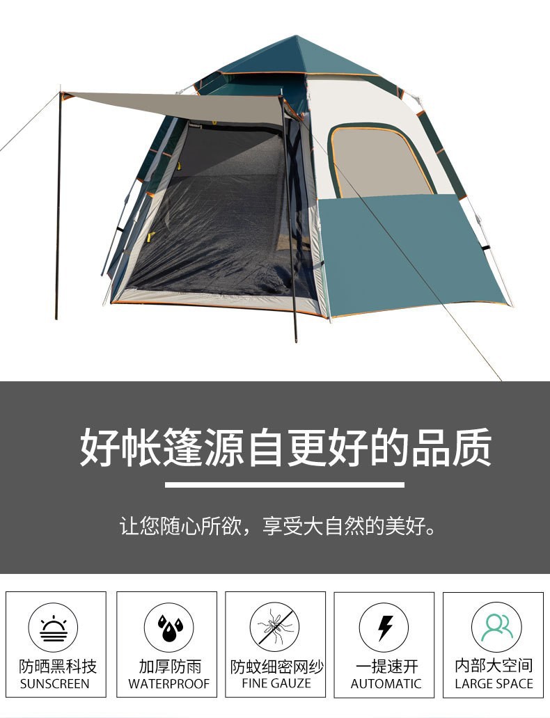 【产品特点】全自动免安装,3秒速开,无需搭建,可适用于户外野营、公园休闲等实用面广。牛津布涂银面料,防晒健康无异味。纤维帐杆任性好不易损坏。便携式包装袋,体积小携带方便。