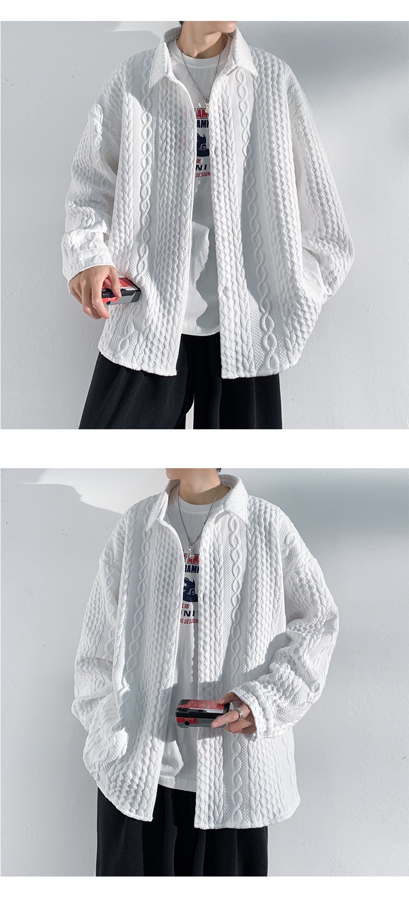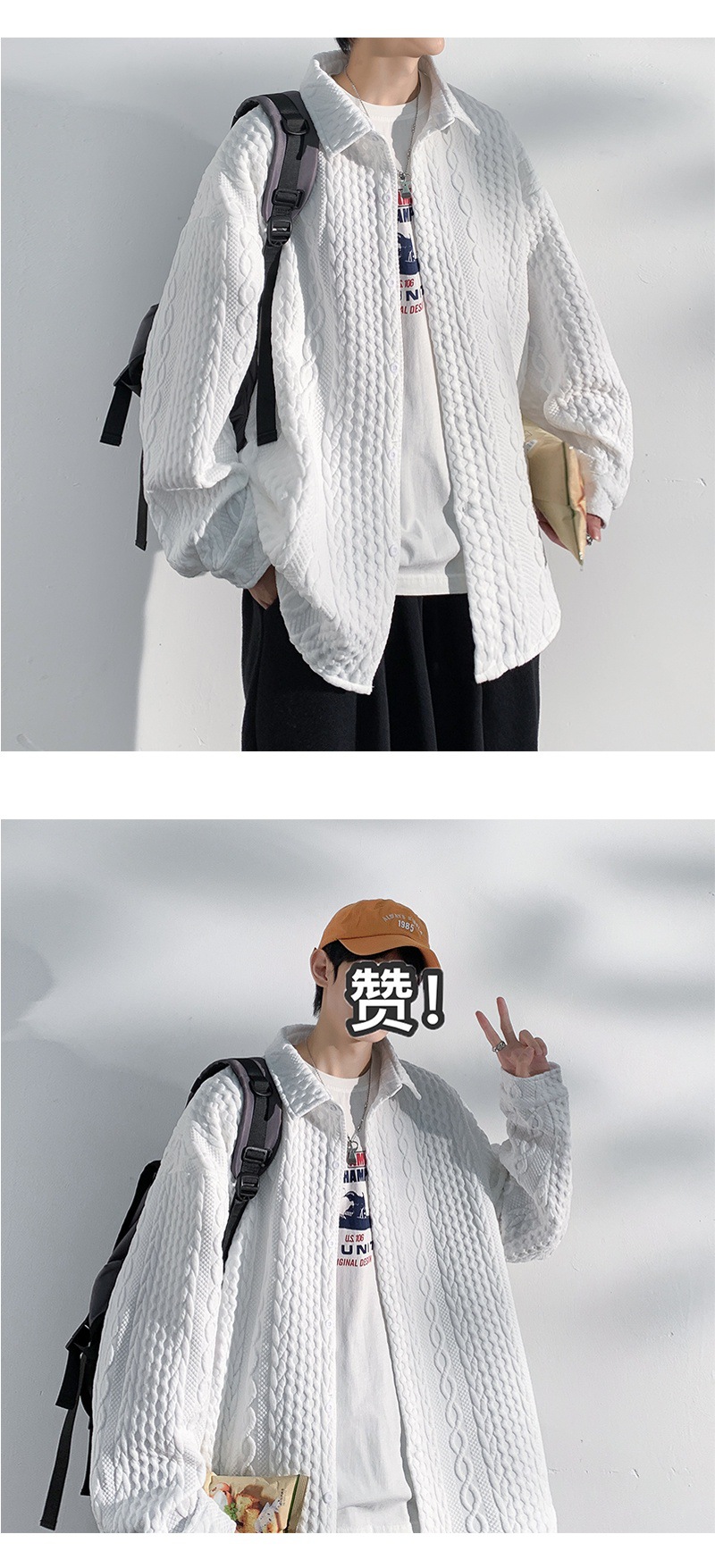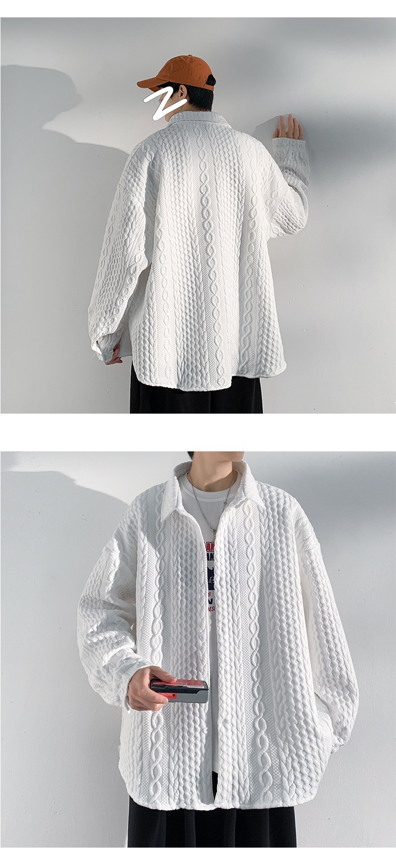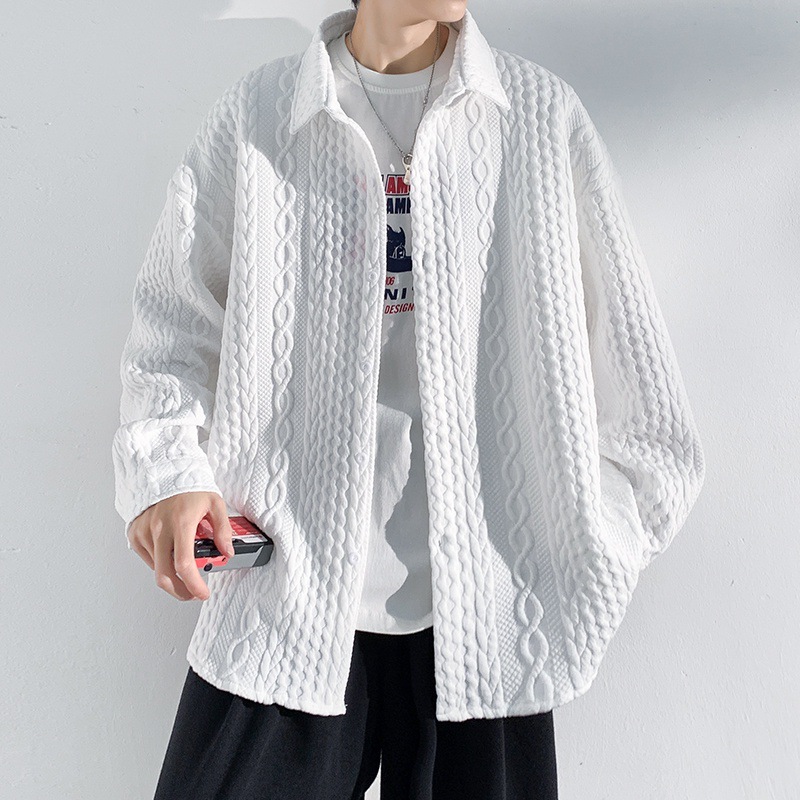 2025 가을 신상 레이지 스타일 텍스처 엠보싱 셔츠 남성 루즈핏 라펠 셔츠 자켓 남성 트렌드스토어 가기