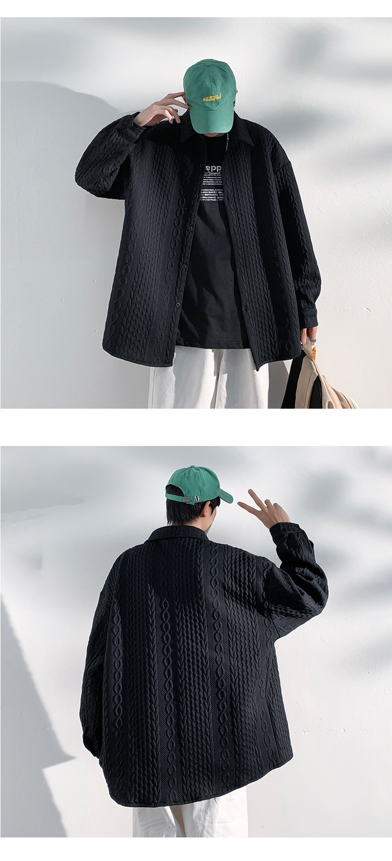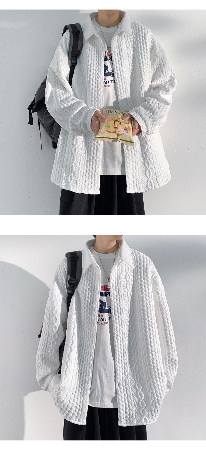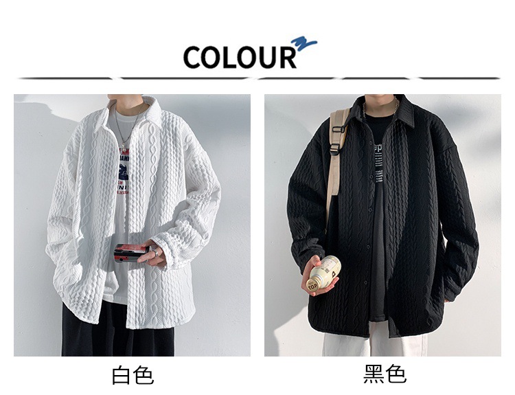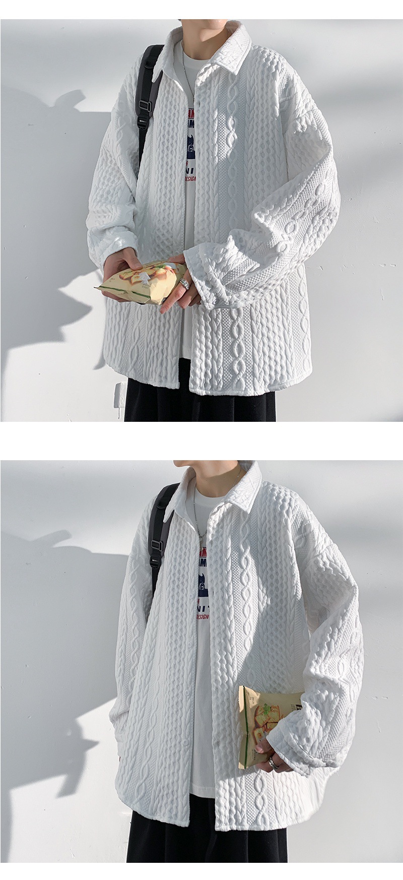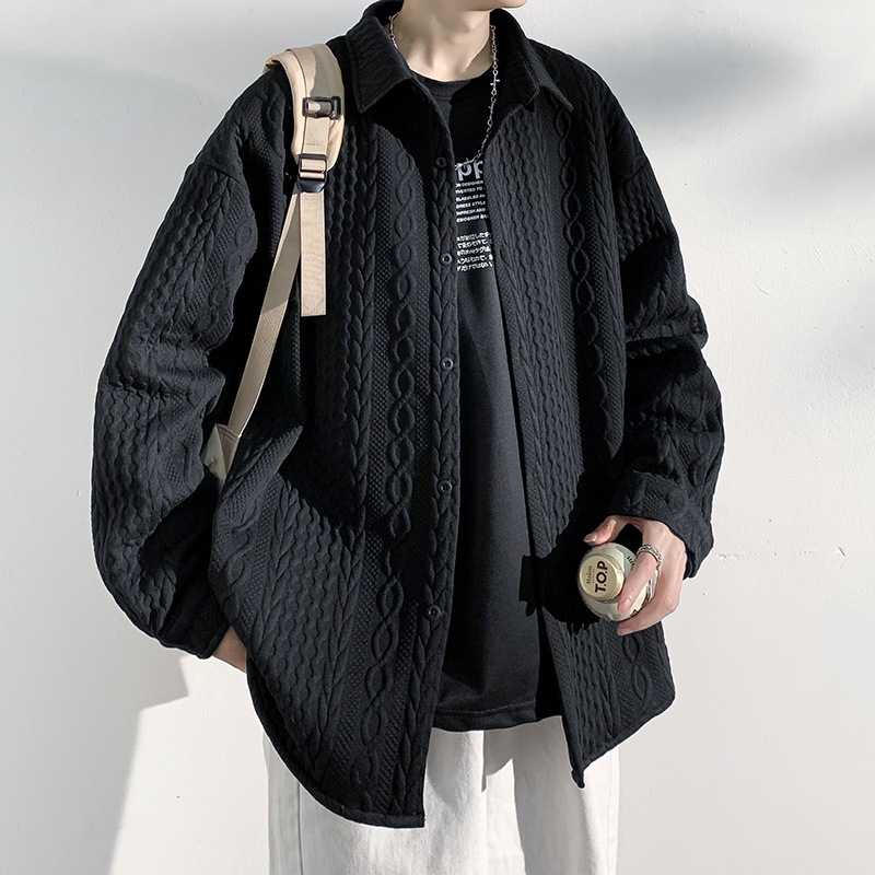 2025 가을 신상 레이지 스타일 텍스처 엠보싱 셔츠 남성 루즈핏 라펠 셔츠 자켓 남성 트렌드스토어 가기