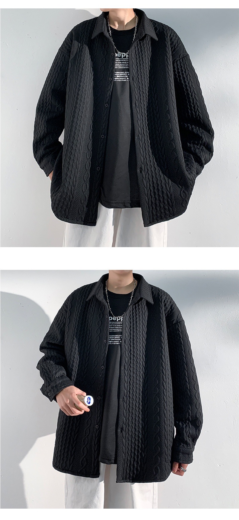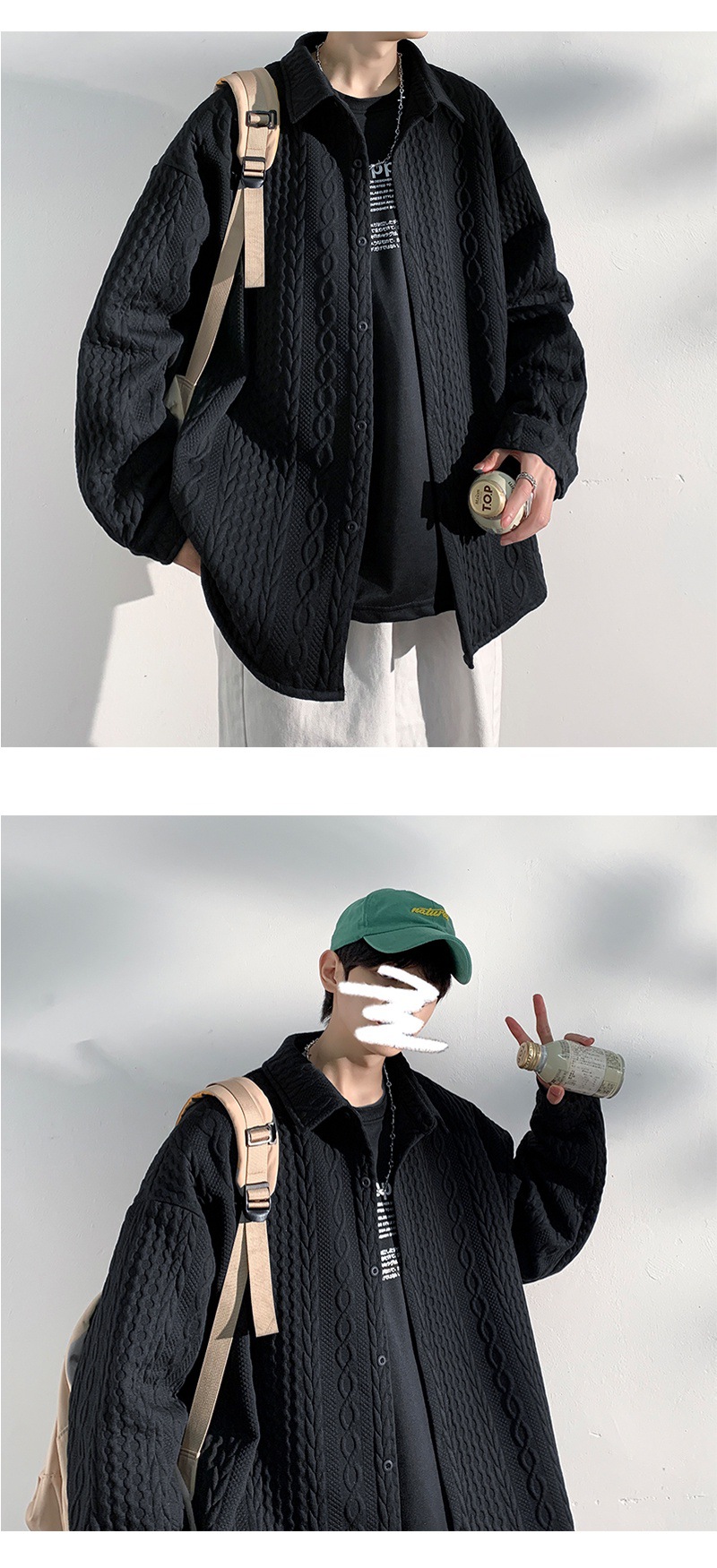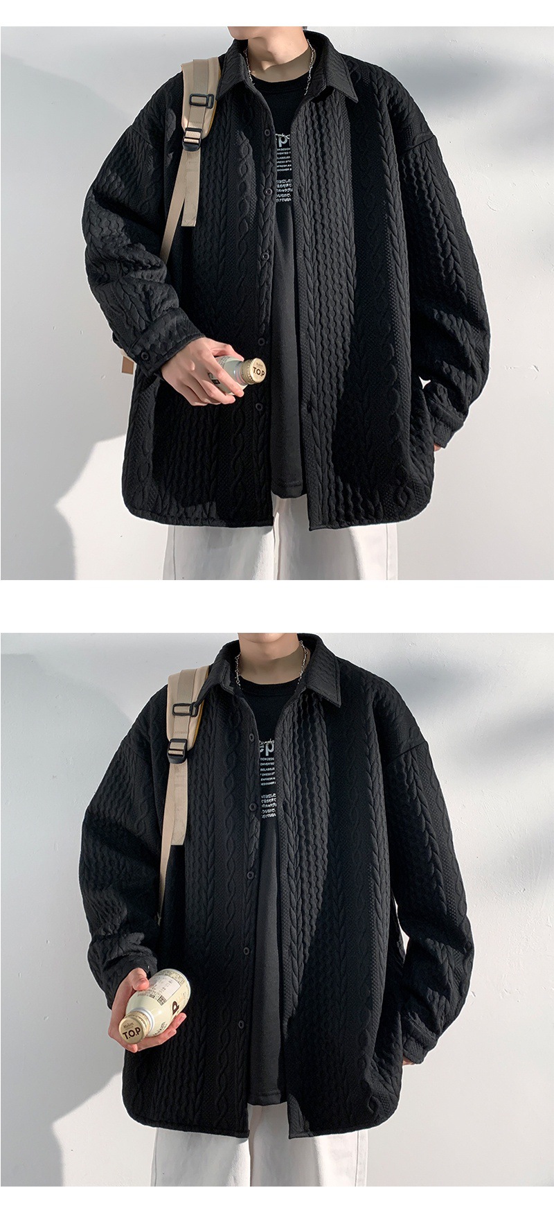 2025 가을 신상 레이지 스타일 텍스처 엠보싱 셔츠 남성 루즈핏 라펠 셔츠 자켓 남성 트렌드스토어 가기