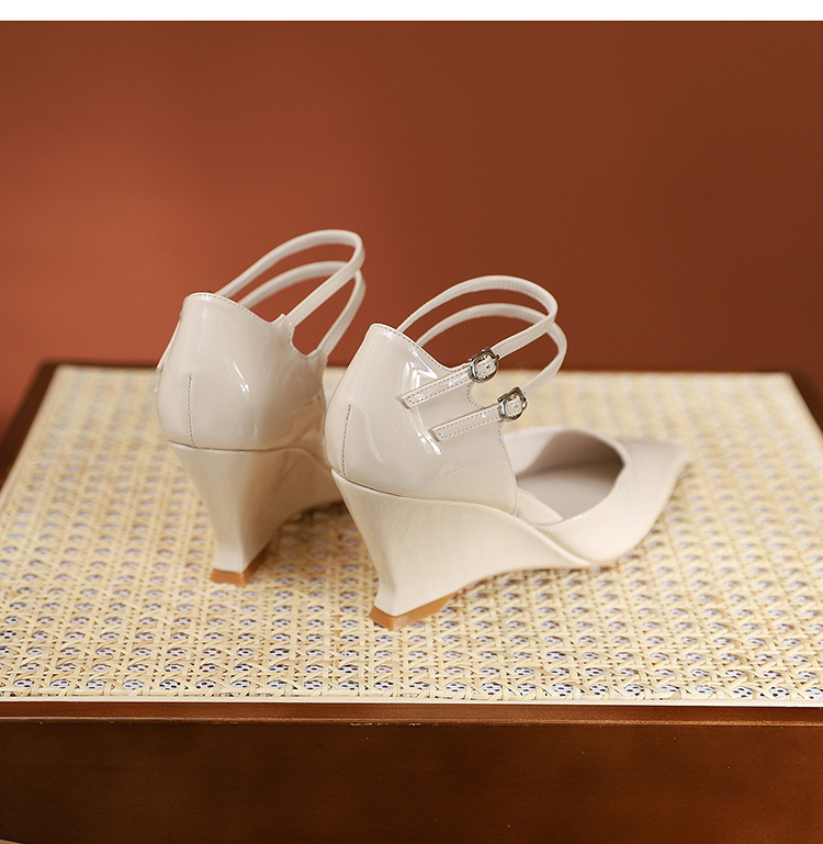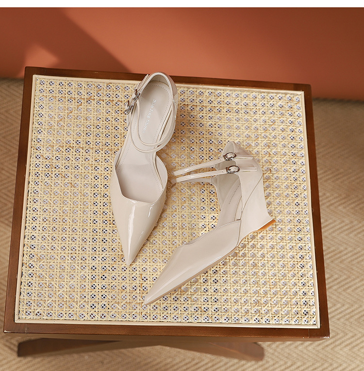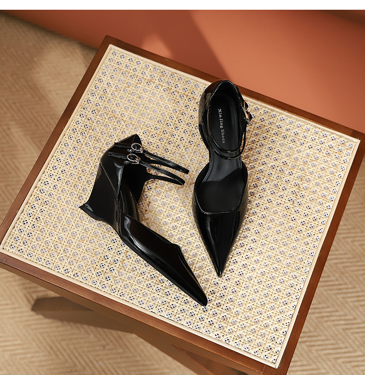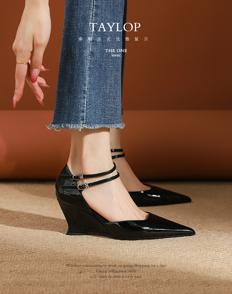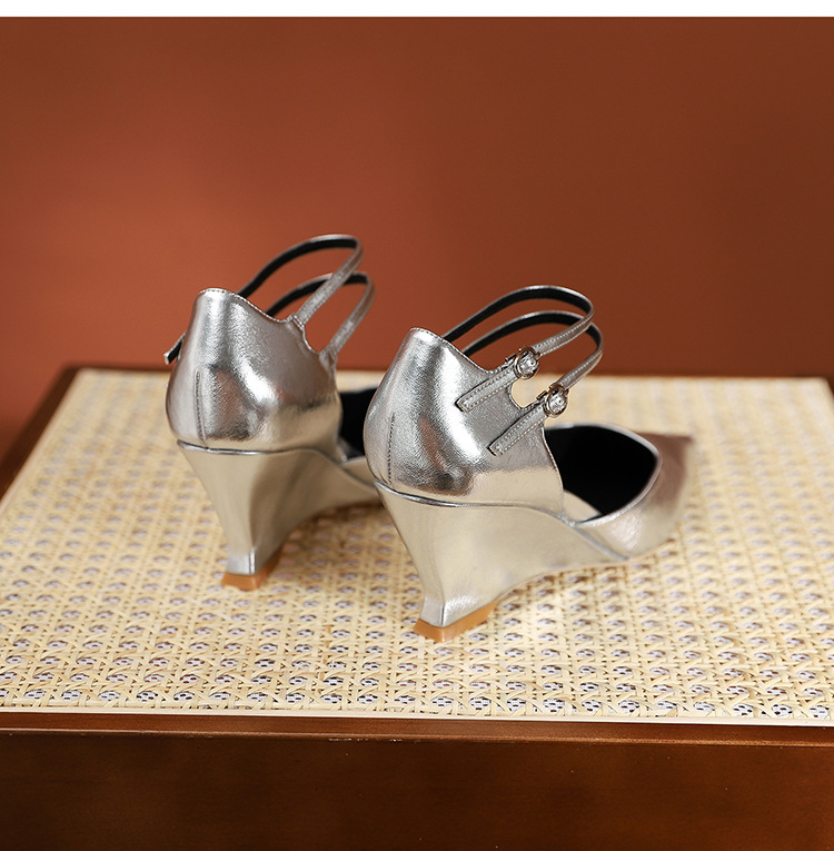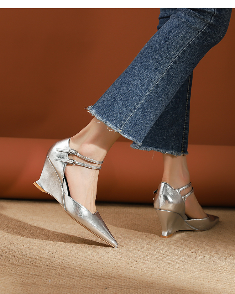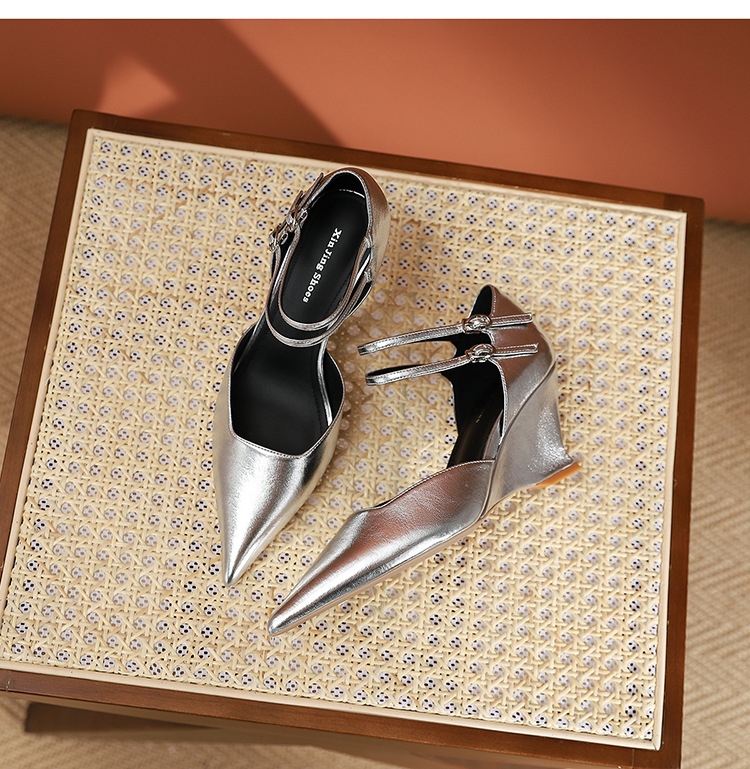 339-1 포인팅 웨지 신발 가을 새로운 포인팅 얕은 입 실버 증가 부드러운 바닥 얇은 스트랩 하이힐 신발