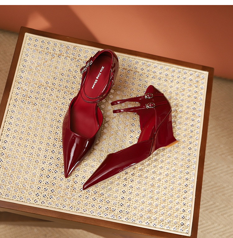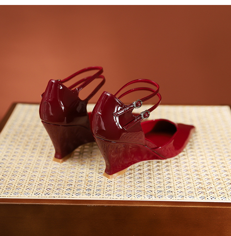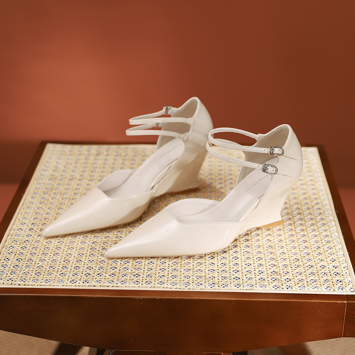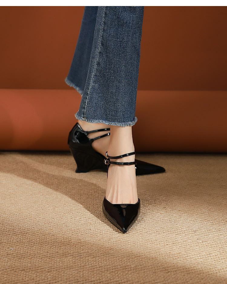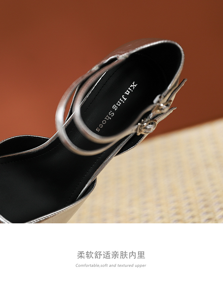 339-1 포인팅 웨지 신발 가을 새로운 포인팅 얕은 입 실버 증가 부드러운 바닥 얇은 스트랩 하이힐 신발