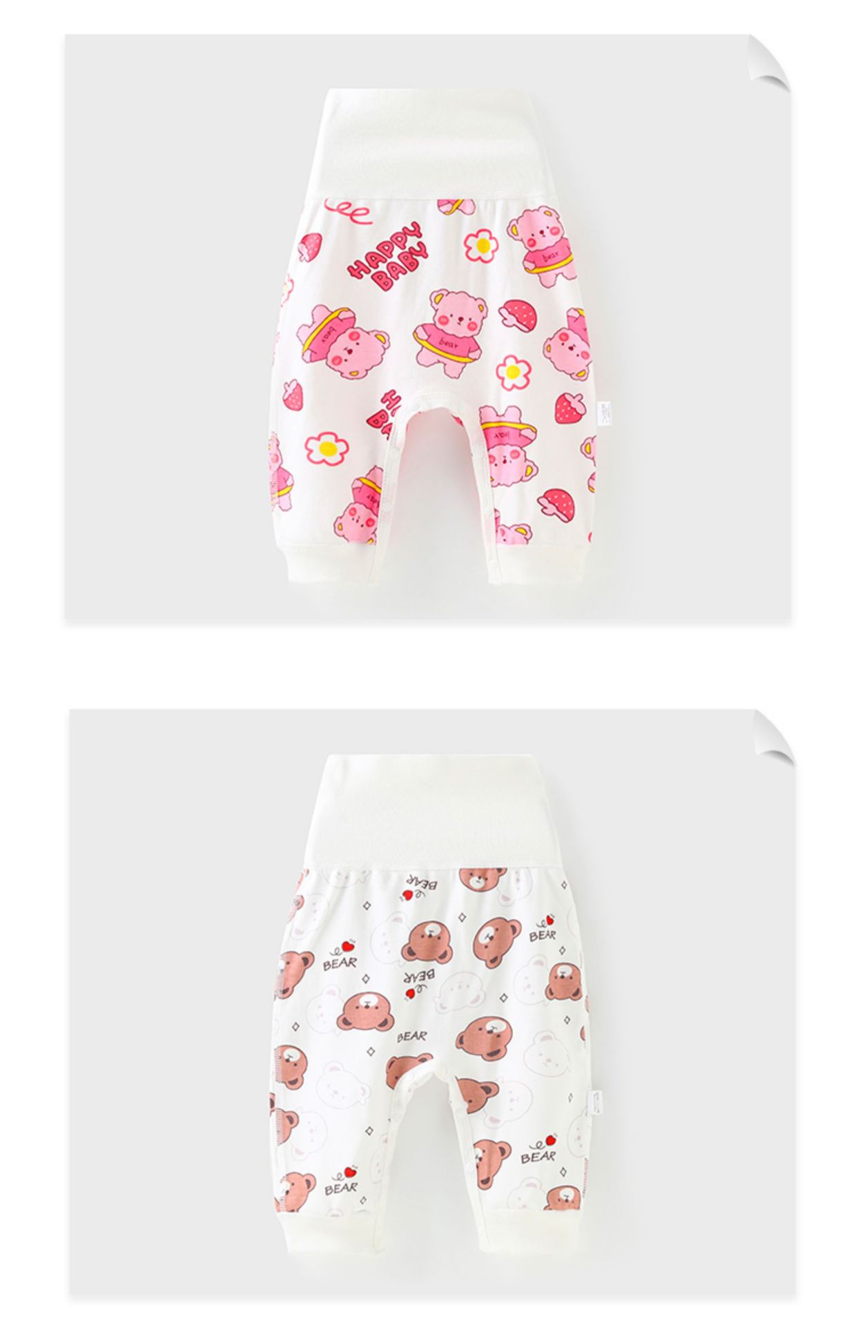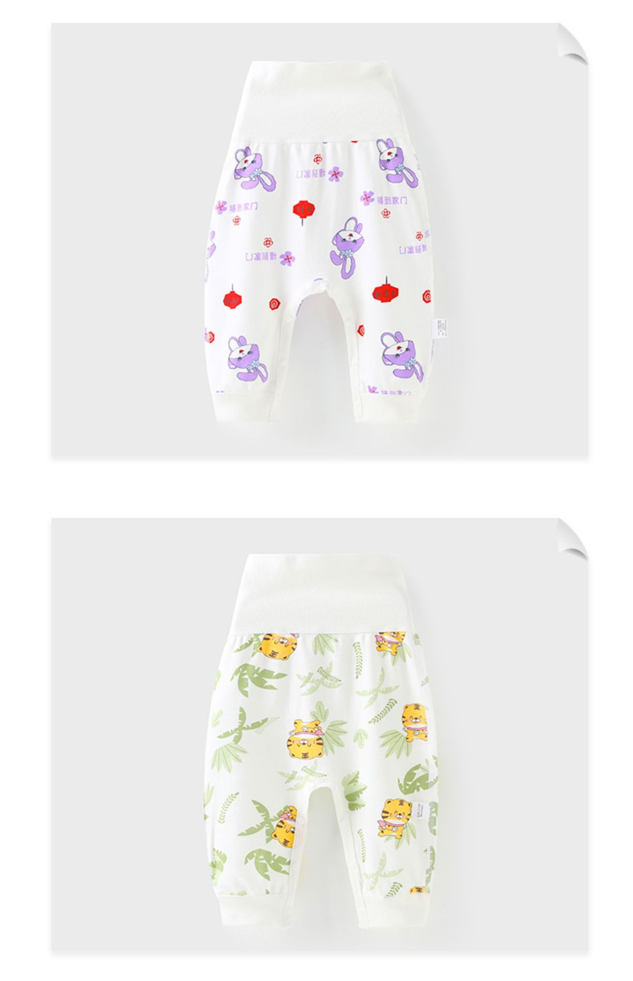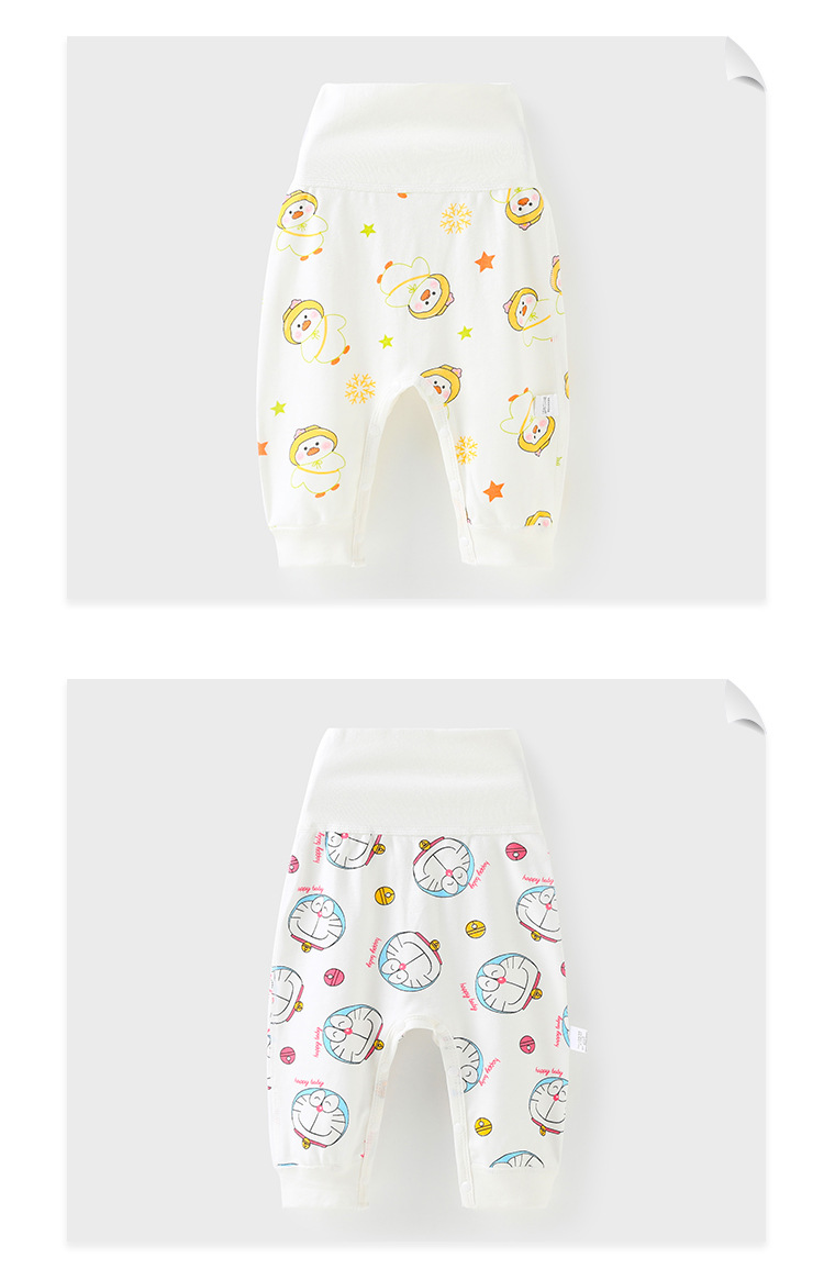 아기의 높은 허리 배꼽 보호 바지 아기 바지 뼈없는 스냅 버튼 큰 뚱뚱한 바지 여성 순면 남자의 오픈 크로트베이스 봄과 가을