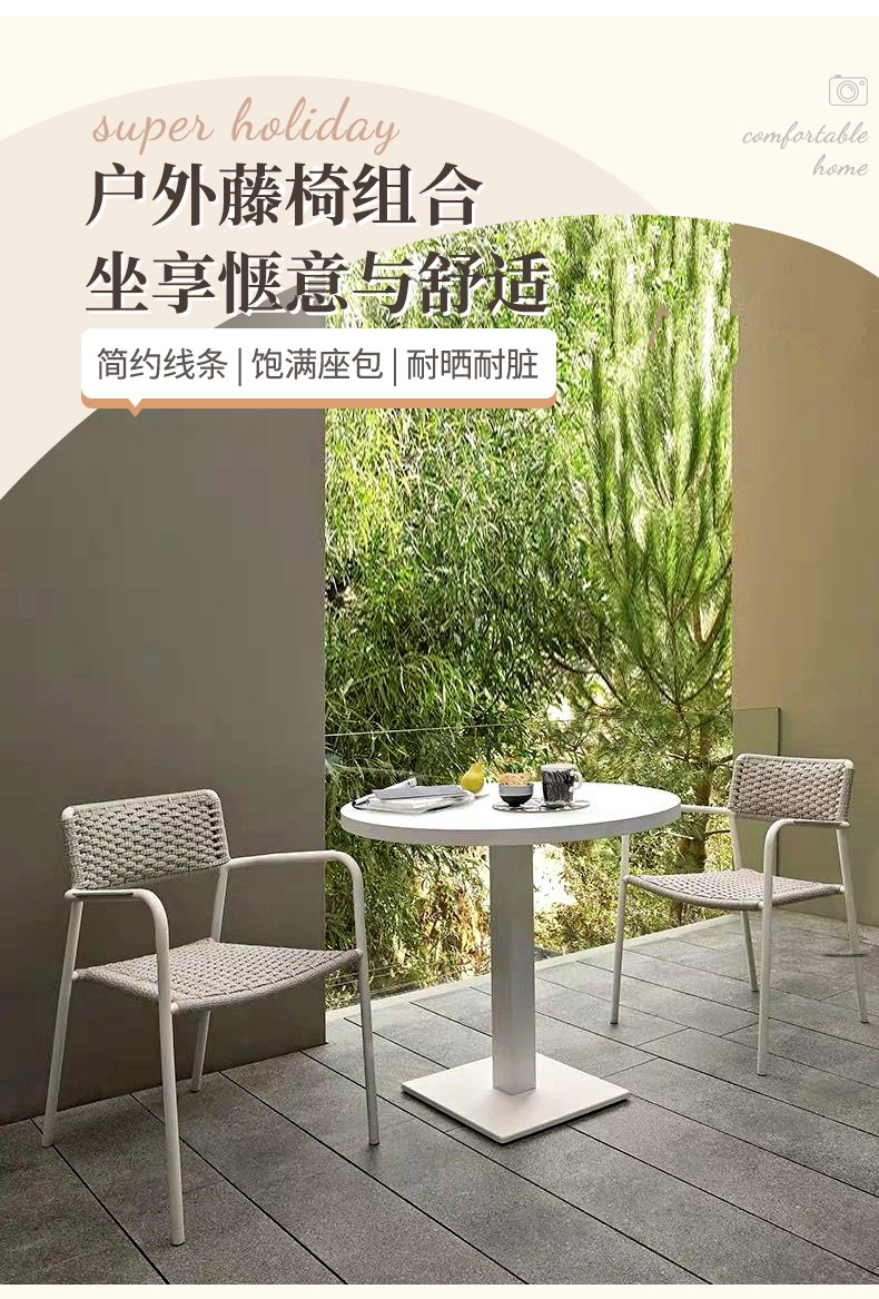 야외 호텔 발코니 등나무 테이블과 의자 빌라 안뜰 야외 판매대 등나무 의자 카페 알루미늄 합금 방수 식탁스토어 가기