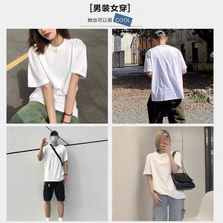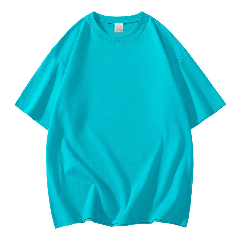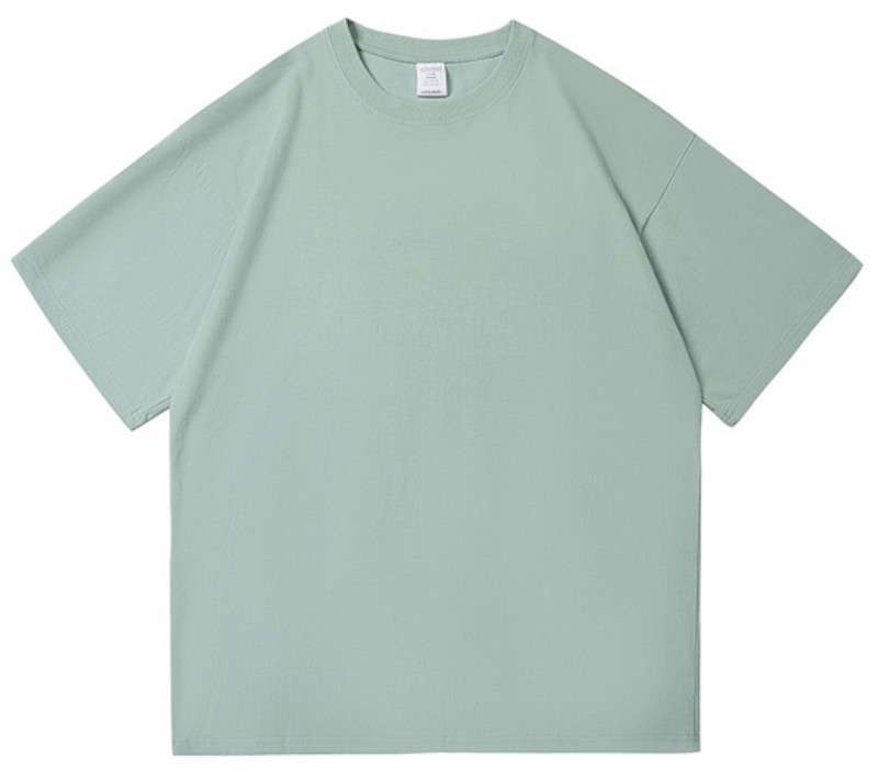 신장면 300g 헤비급 작은 신선한 민트 녹색 단색 둥근 목 짧은 소매 티셔츠 여성 느슨한 편안한 바닥 셔츠 남성스토어 가기