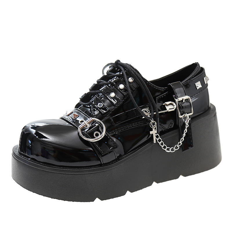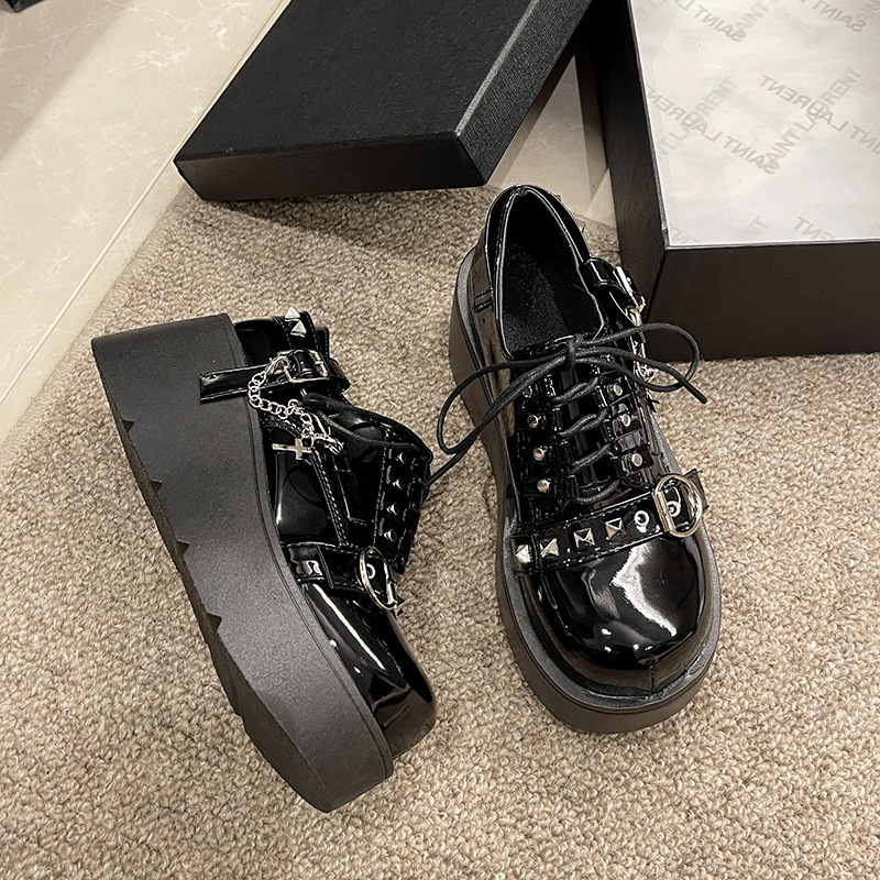 하위 문화 스파이스 걸스 플랫폼 신발 2024 여름 새로운 고딕 스타일 Y2K 디아블로 펑크 플랫폼 작은 가죽 신발 여성 싱글 레이어 신발