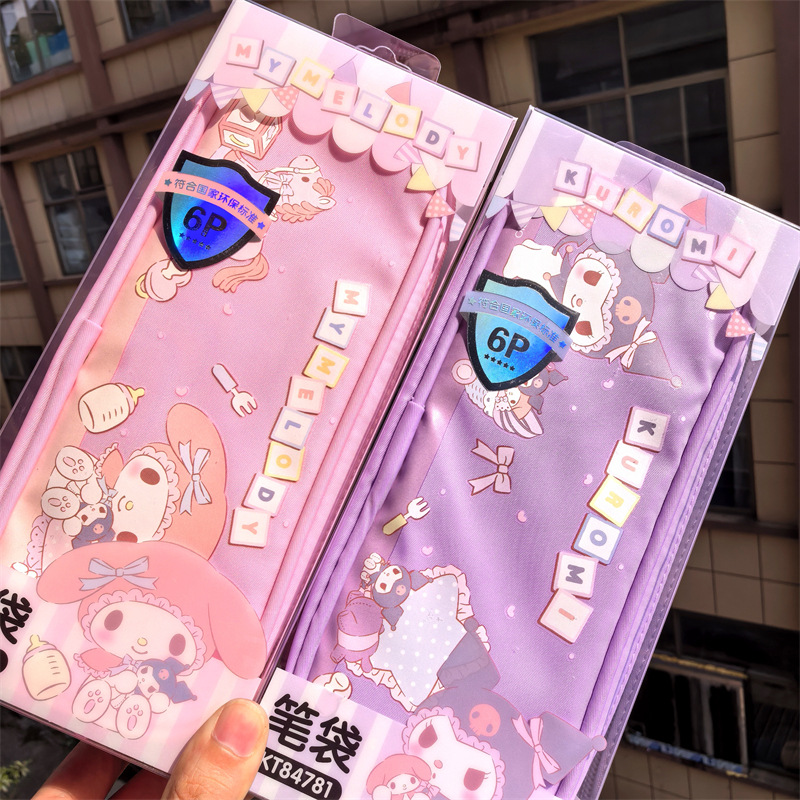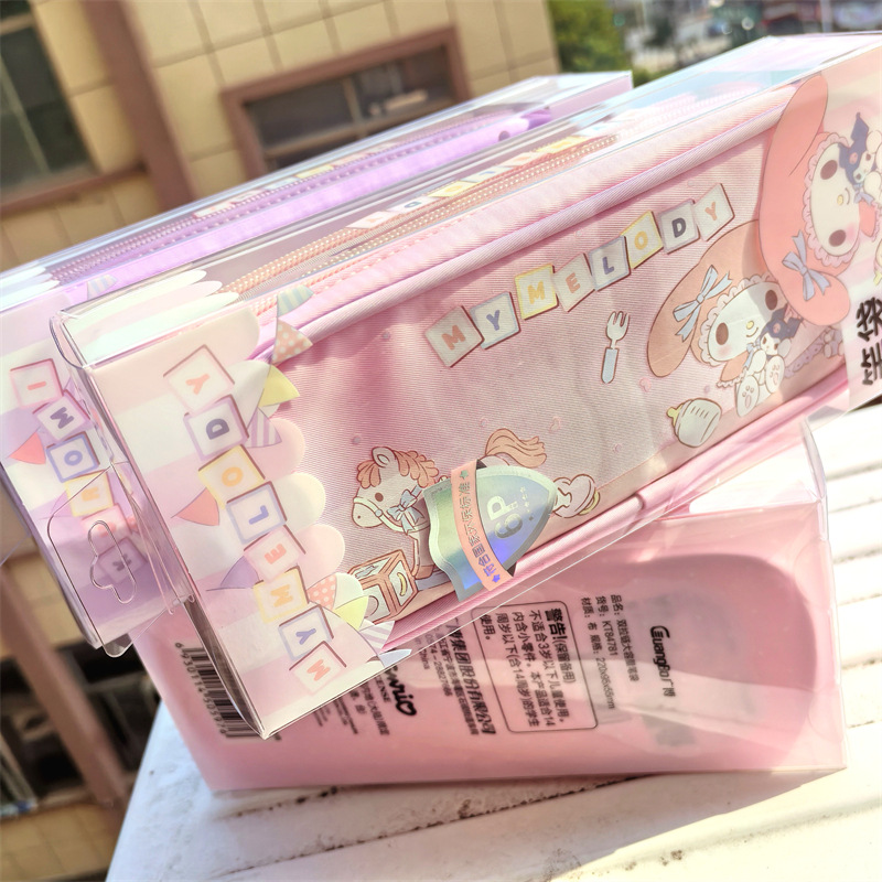 산리오 정품 연필 가방 간단한 문구 가방 두 배 대용량 만화 연필 가방 높은 색상 가치 지퍼 연필 가방 도매