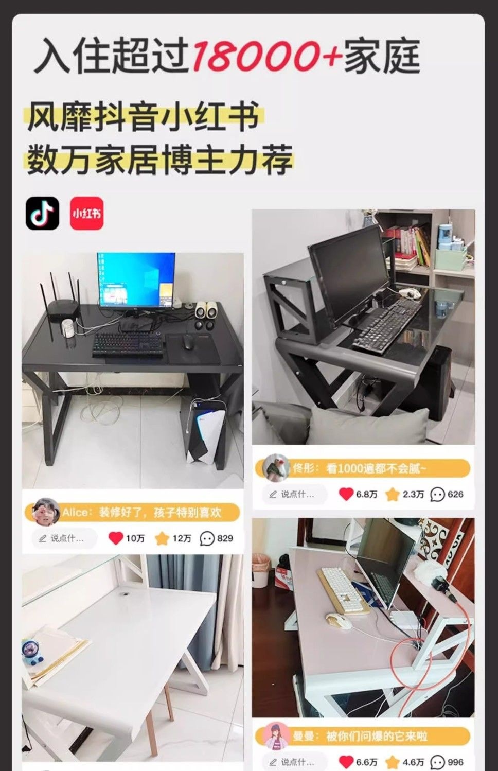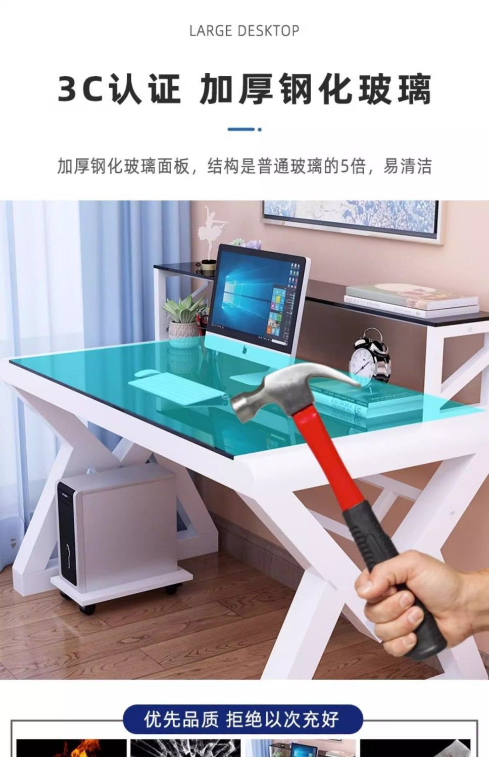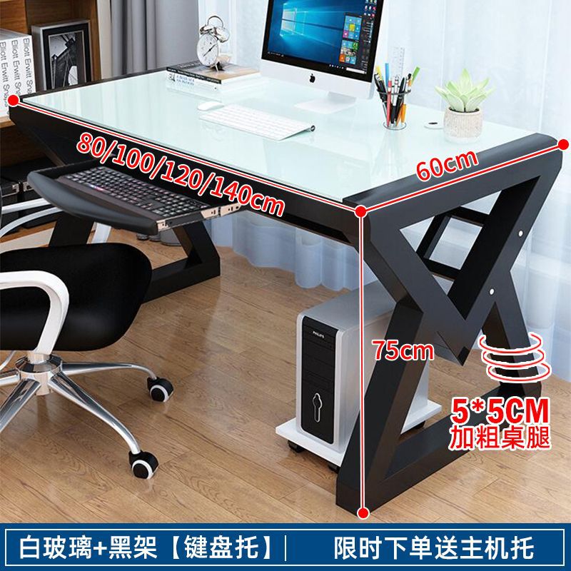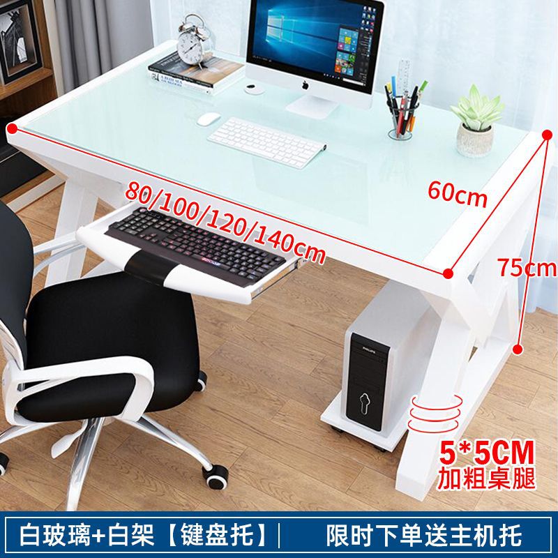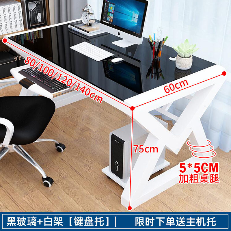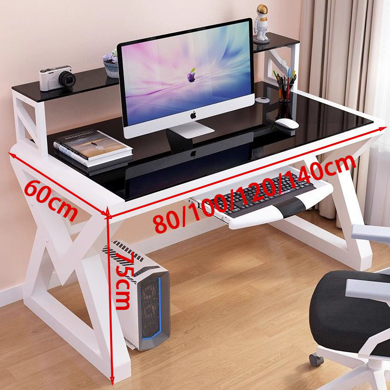 • [책장 키보드 트레이 포함] 검정색 유리 및 흰색 선반