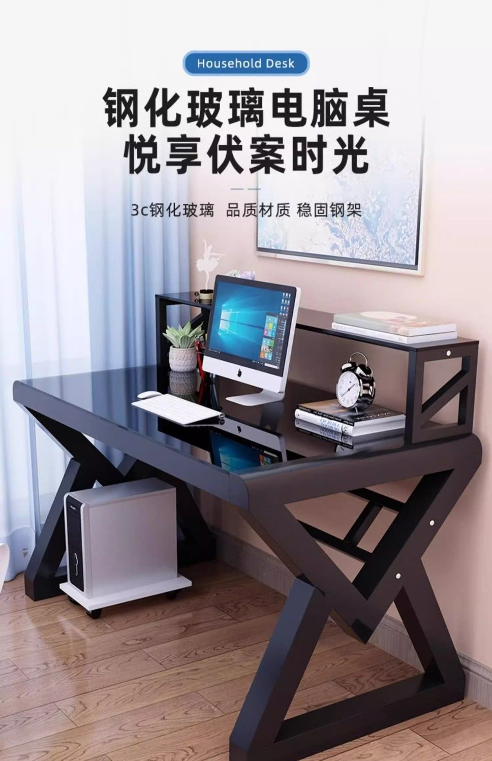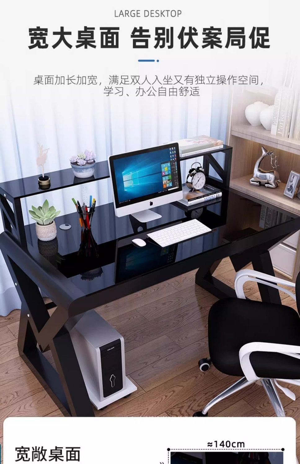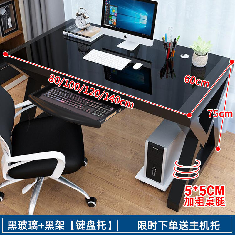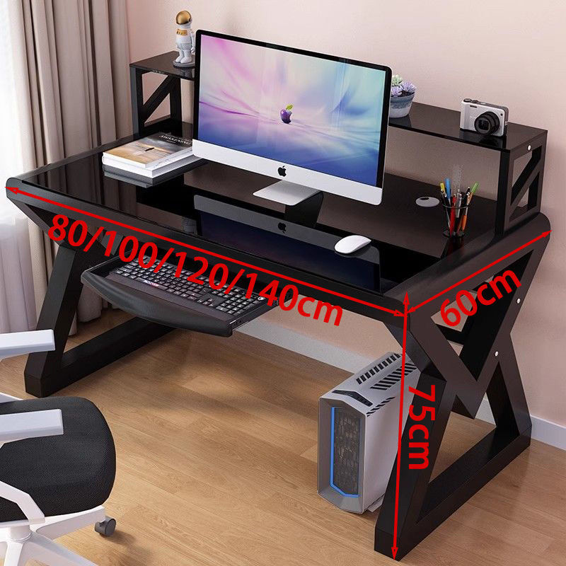 • [책장 키보드 트레이 포함] 블랙 유리 블랙 프레임