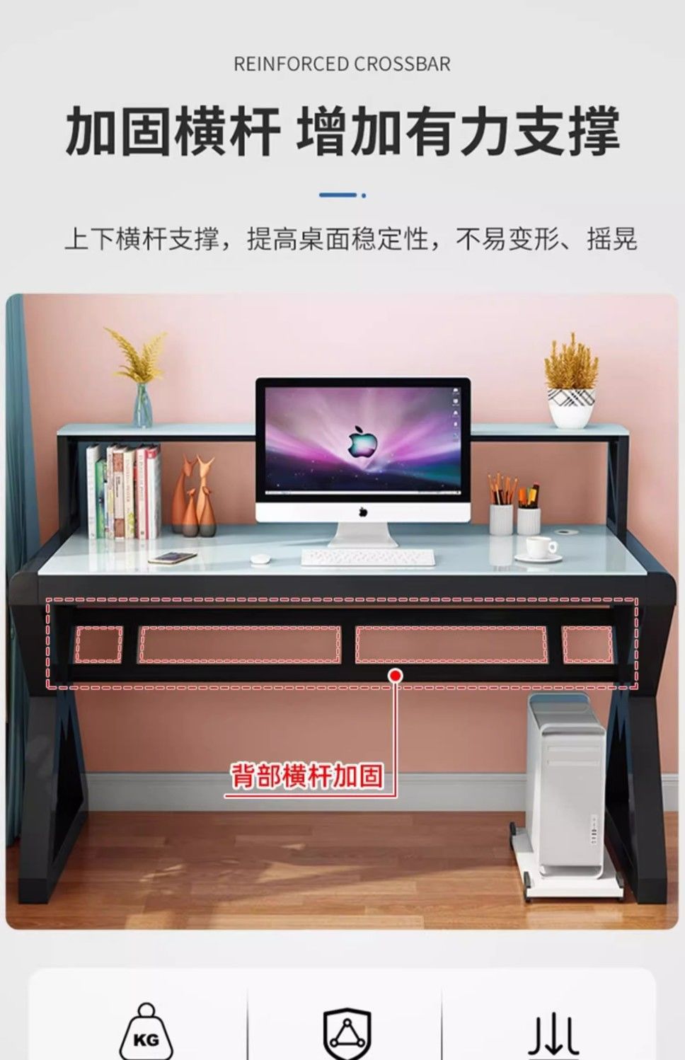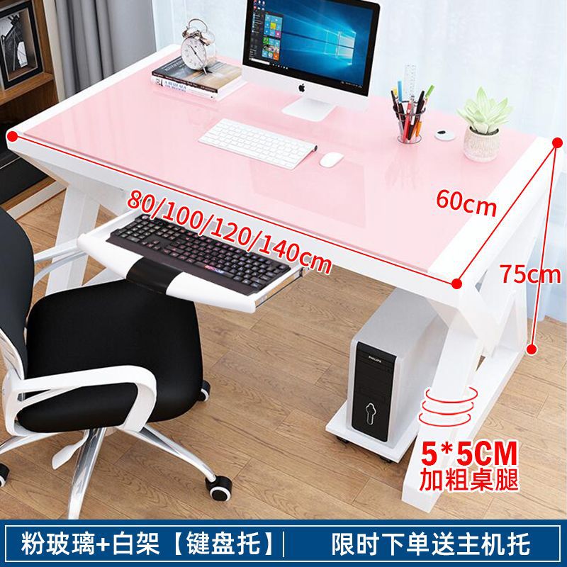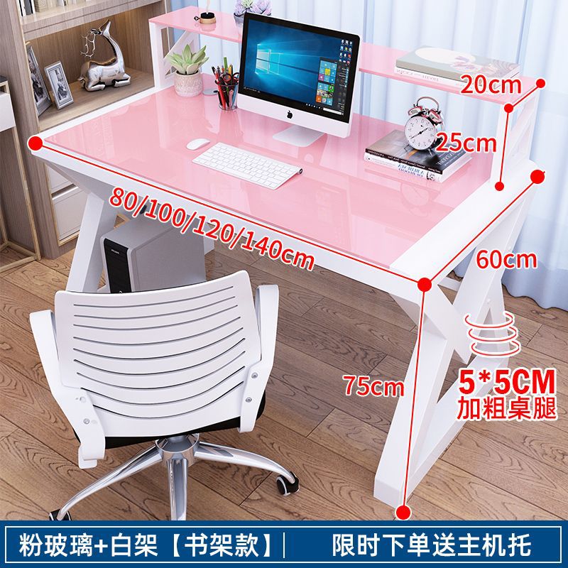 • [책장 키보드 트레이 포함] 핑크색 유리와 흰색 선반