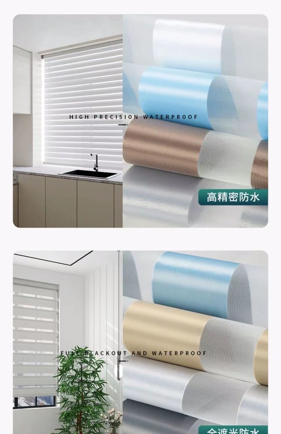 천공되지 않은 롤업 형 부드러운 거즈 커튼 반 음영 이중 방수 블라인드 사무실 주방 욕실 블라인드