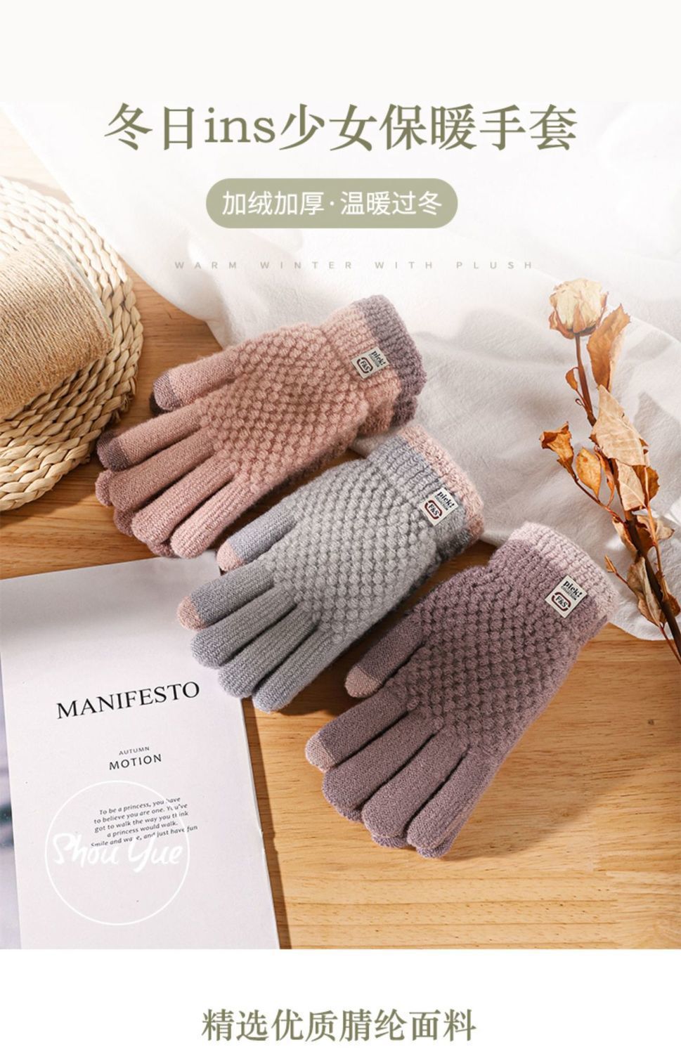 장갑 여성의 겨울 따뜻한 기모 두껍게 냉정한 귀여운 승마 학생 노인을위한 겨울면 장갑스토어 가기