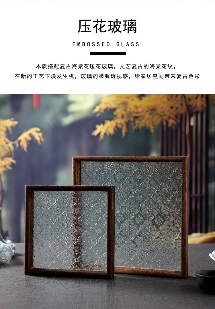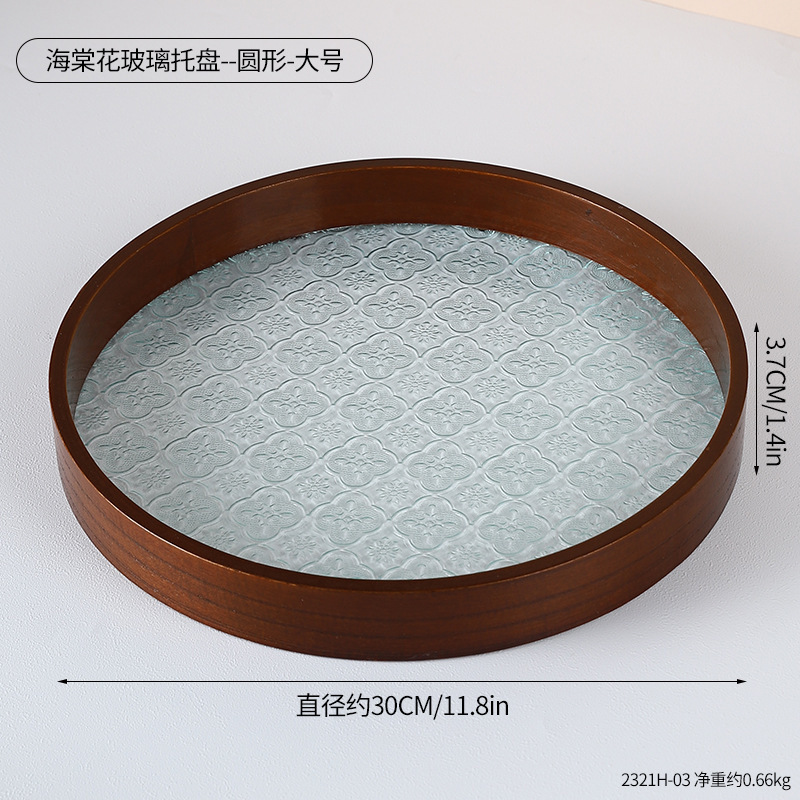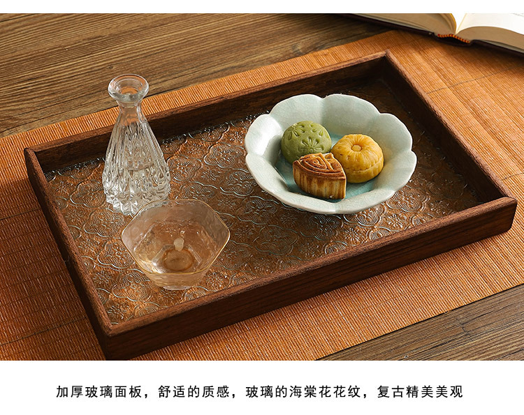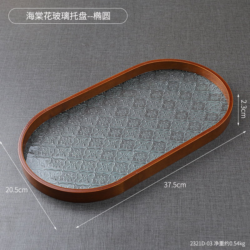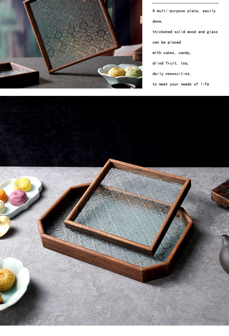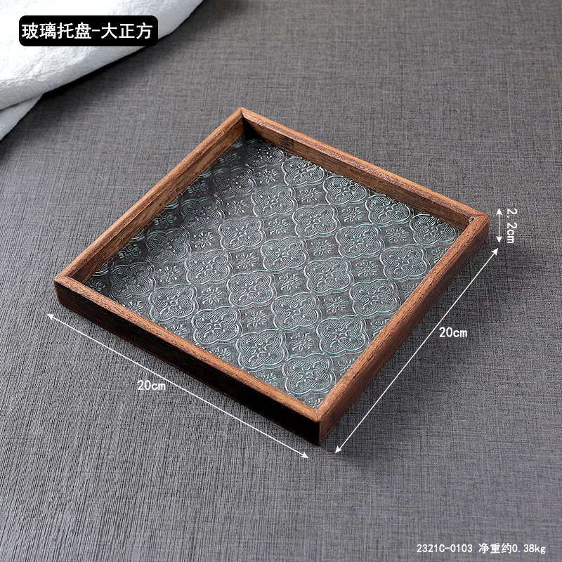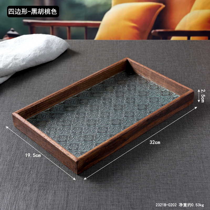 • 2321B-0202 사변형 베고니아 꽃 유리 트레이---블랙 호두 색상
