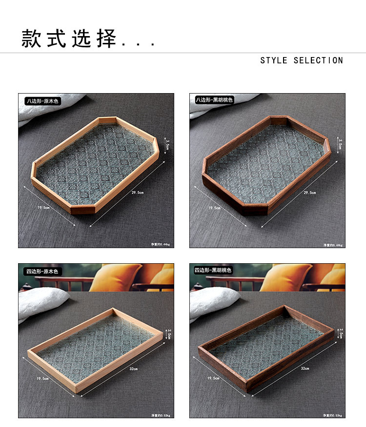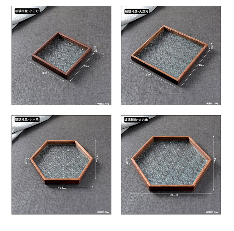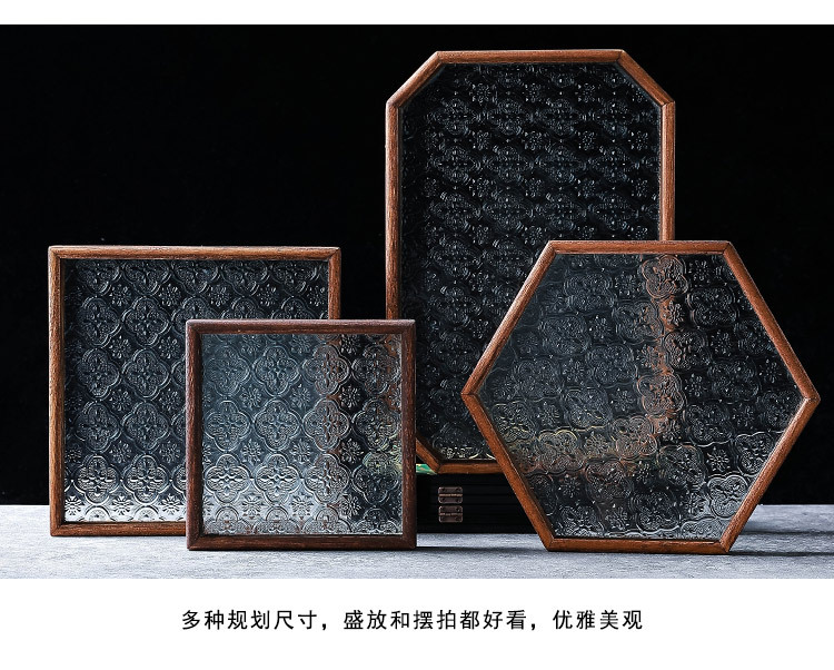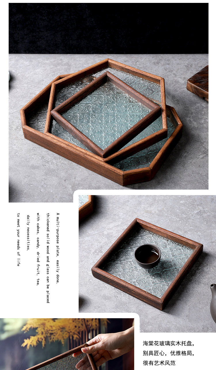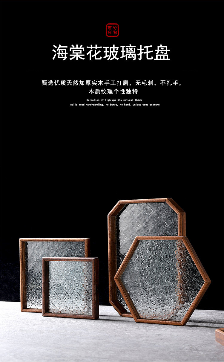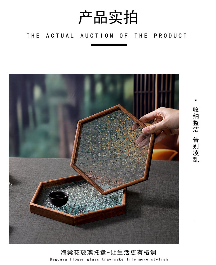 다각형 베고니아 꽃 유리 트레이 새로운 중국 마름모 차 트레이 솔리드 우드 디쉬 포인트 다도 세트 저장 트레이스토어 가기