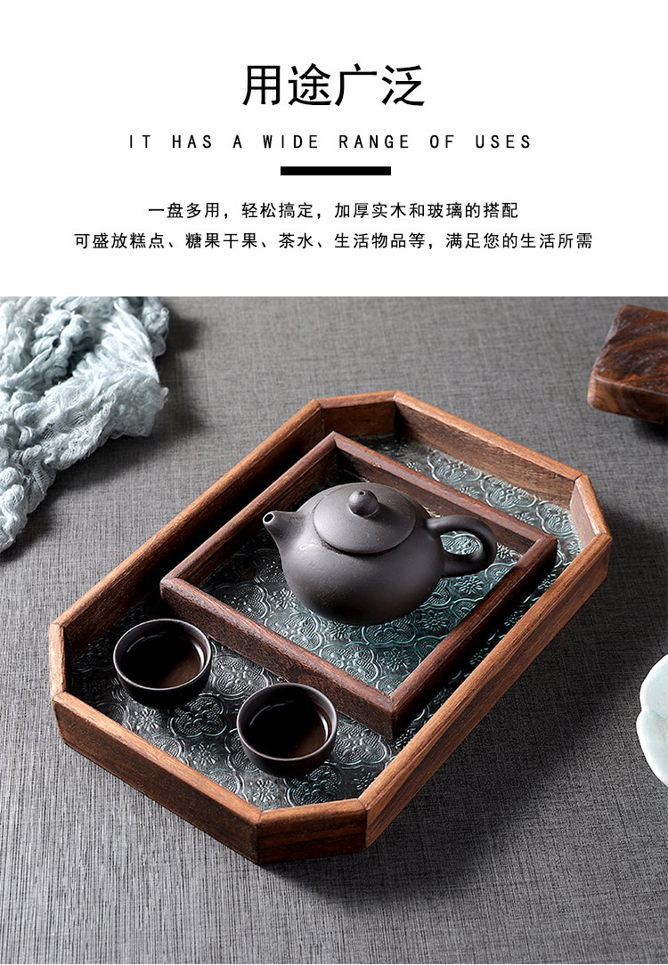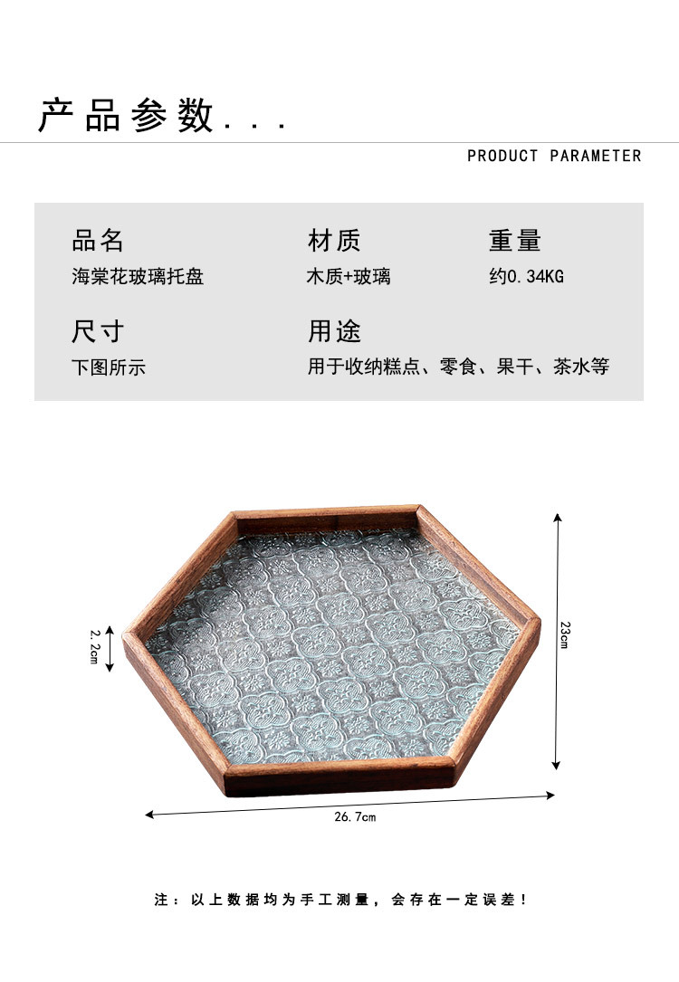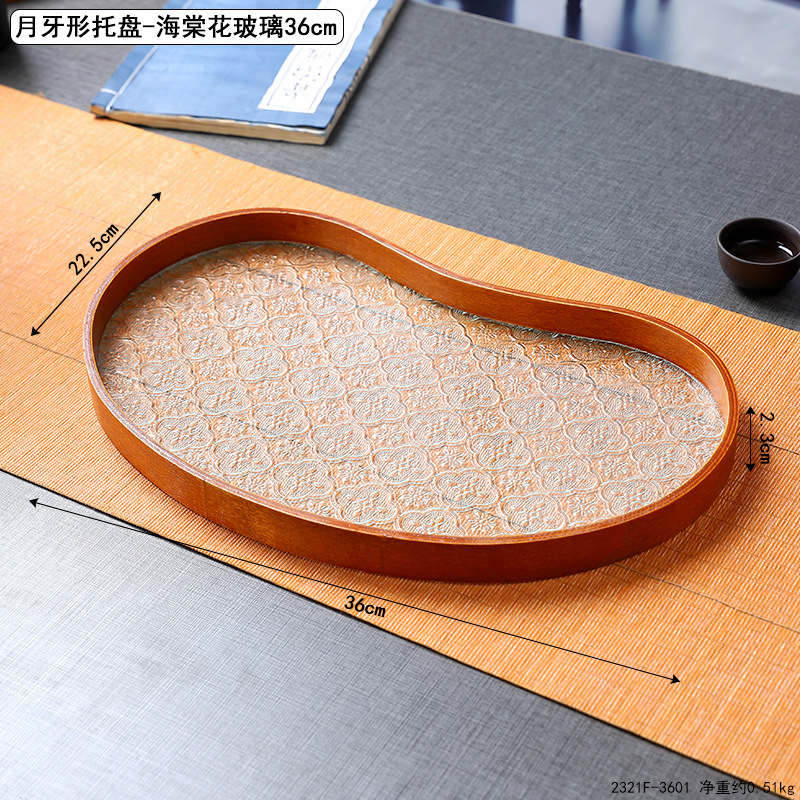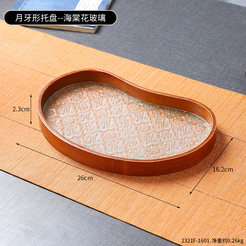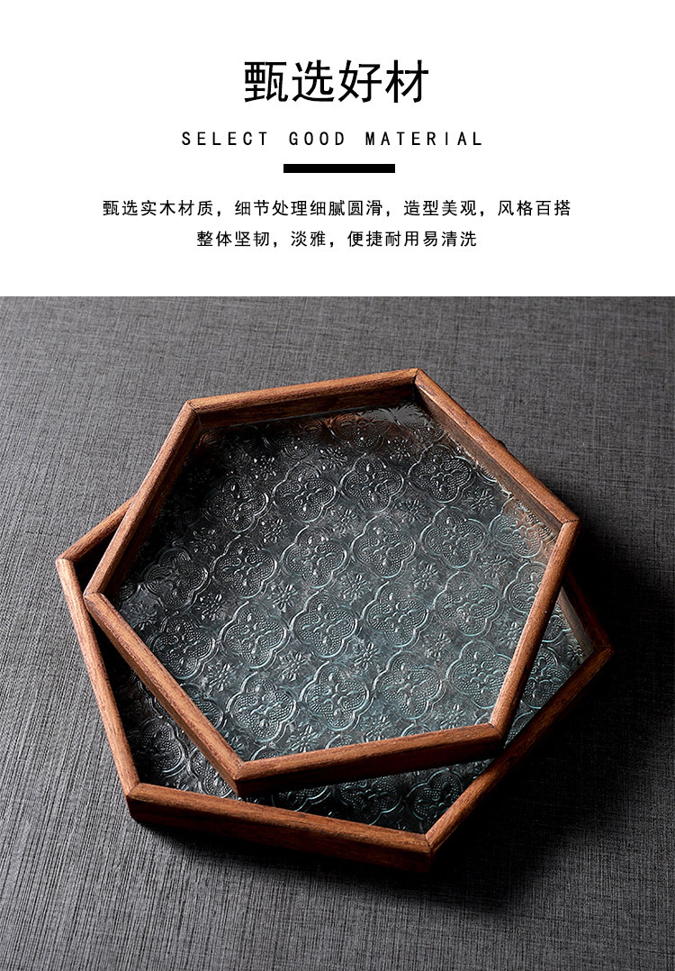 다각형 베고니아 꽃 유리 트레이 새로운 중국 마름모 차 트레이 솔리드 우드 디쉬 포인트 다도 세트 저장 트레이