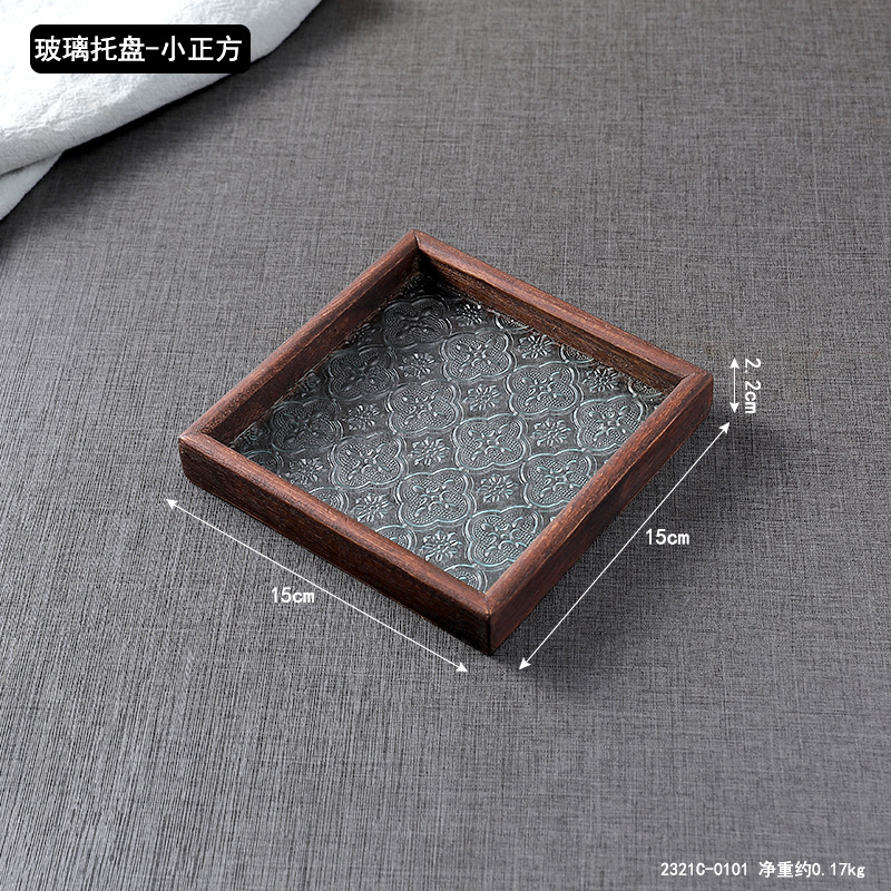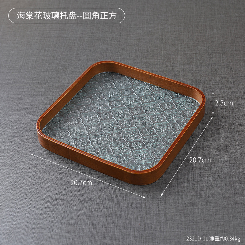 • 2321B-0201 사각 베고니아 꽃 유리 트레이----나무 색상