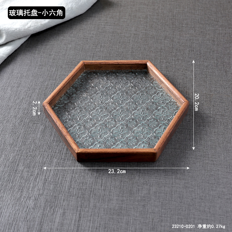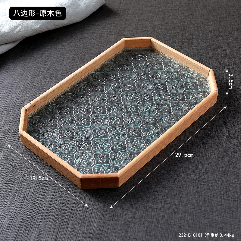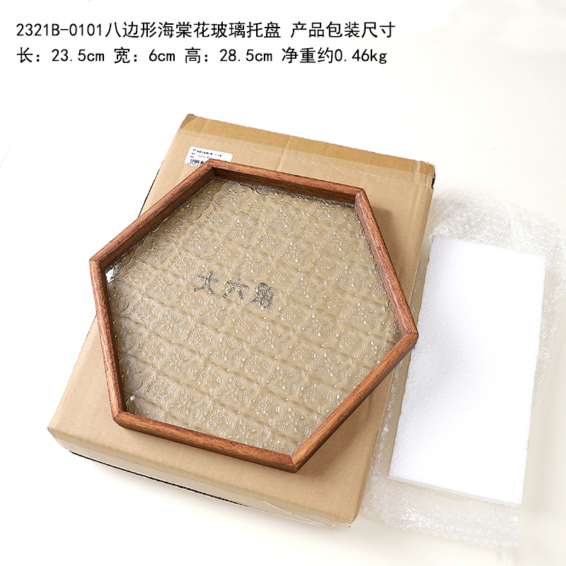• 2321B-0101 팔각형 베고니아 꽃 유리 트레이----나무 색상