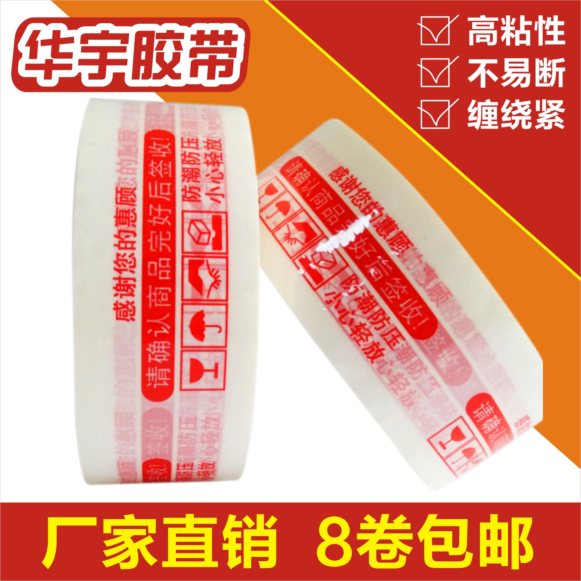 • 흰색 바탕에 주황색 글자 [폭 4.3cm, 두께 2.4cm] 48롤/박스