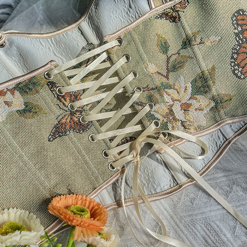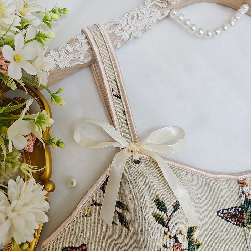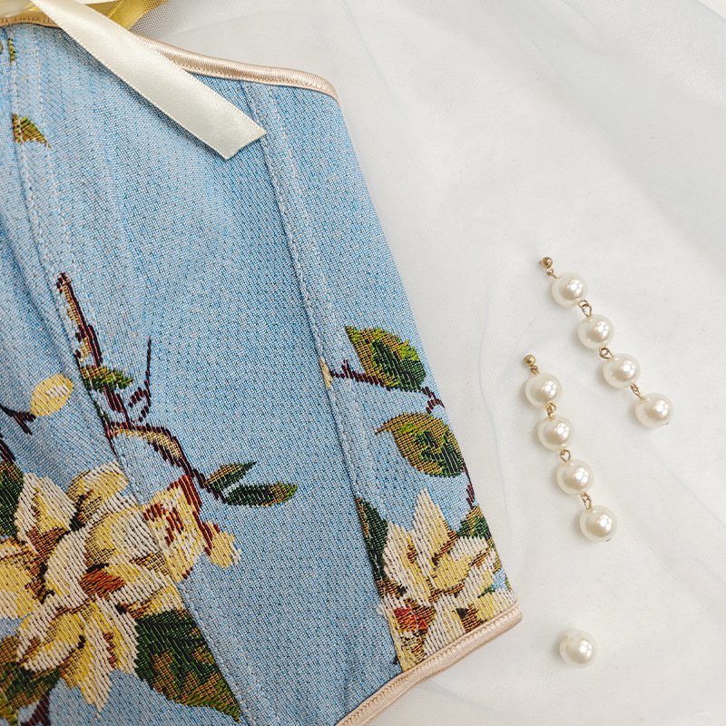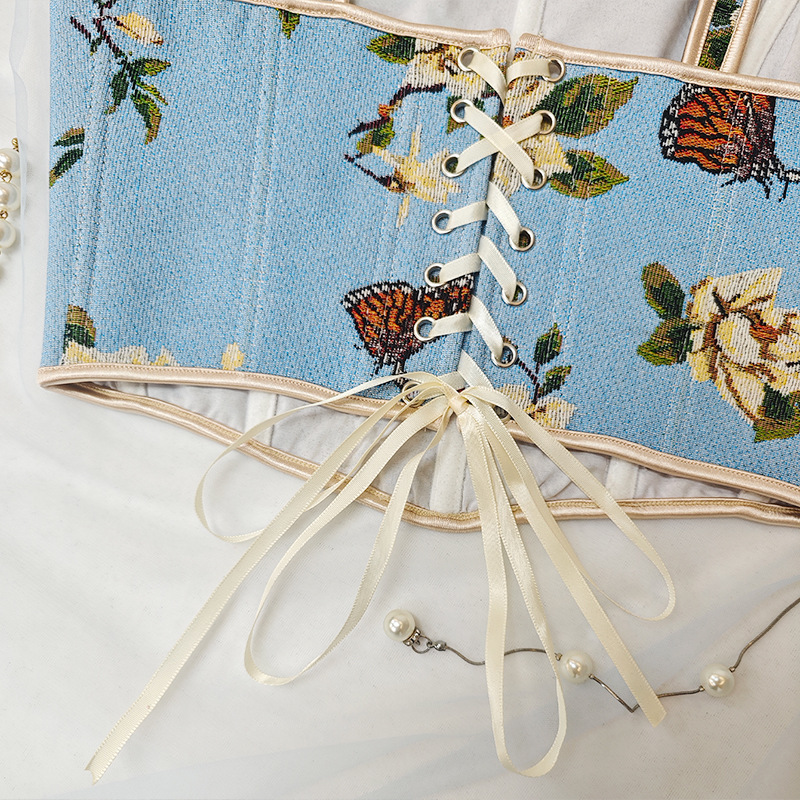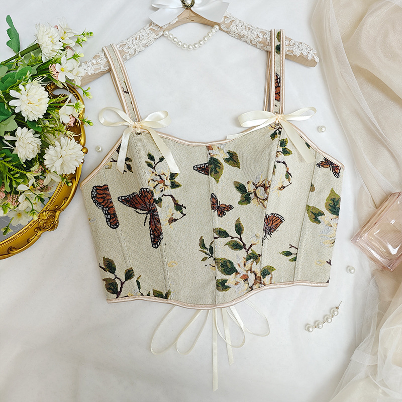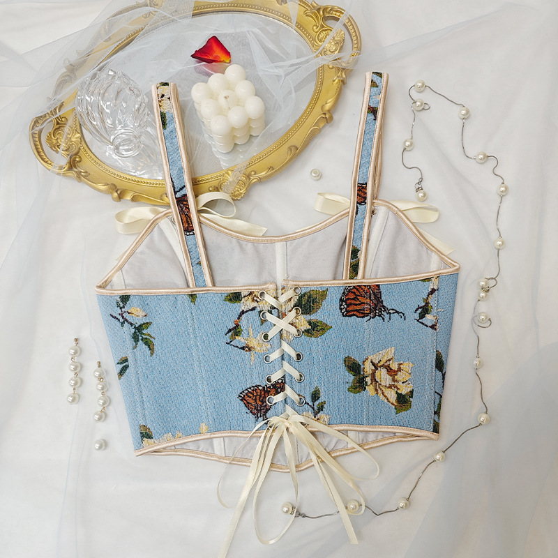 국경 간 핫 세일 프랑스 스타일 활 레이스 업 꽃 섹시한 셰이퍼 여성용 슬링 프린트 슬림 핏 조끼 코르셋스토어 가기