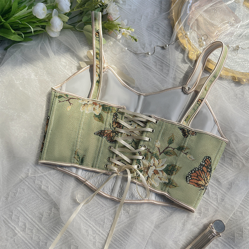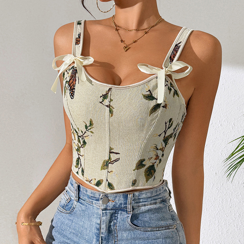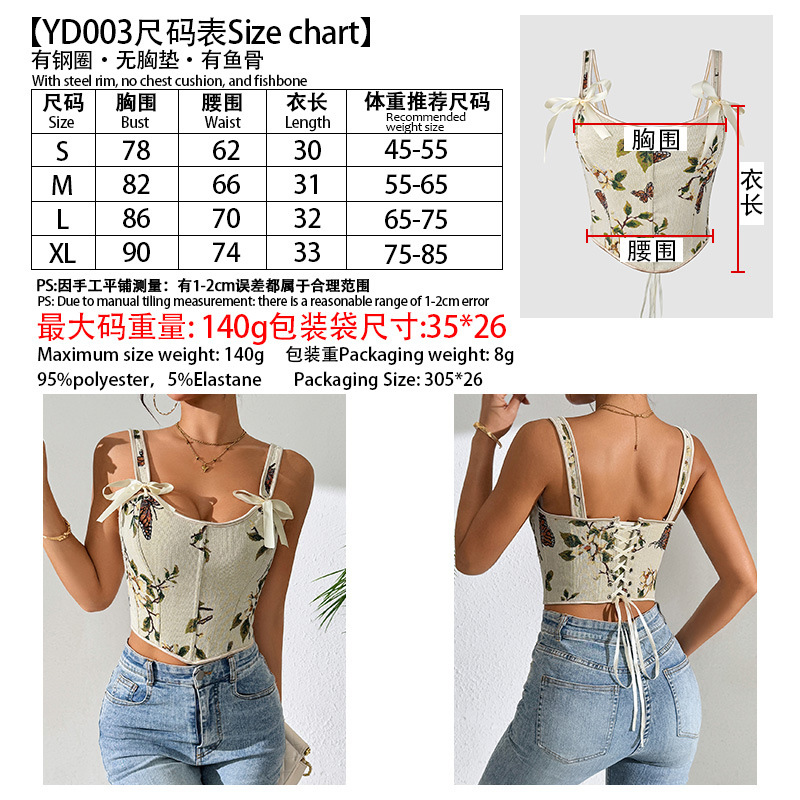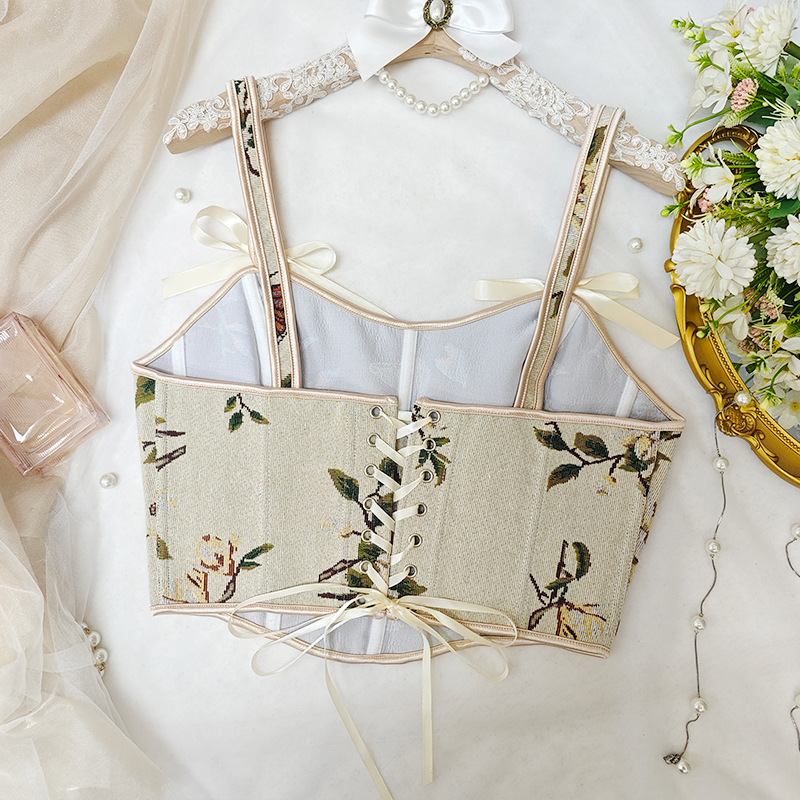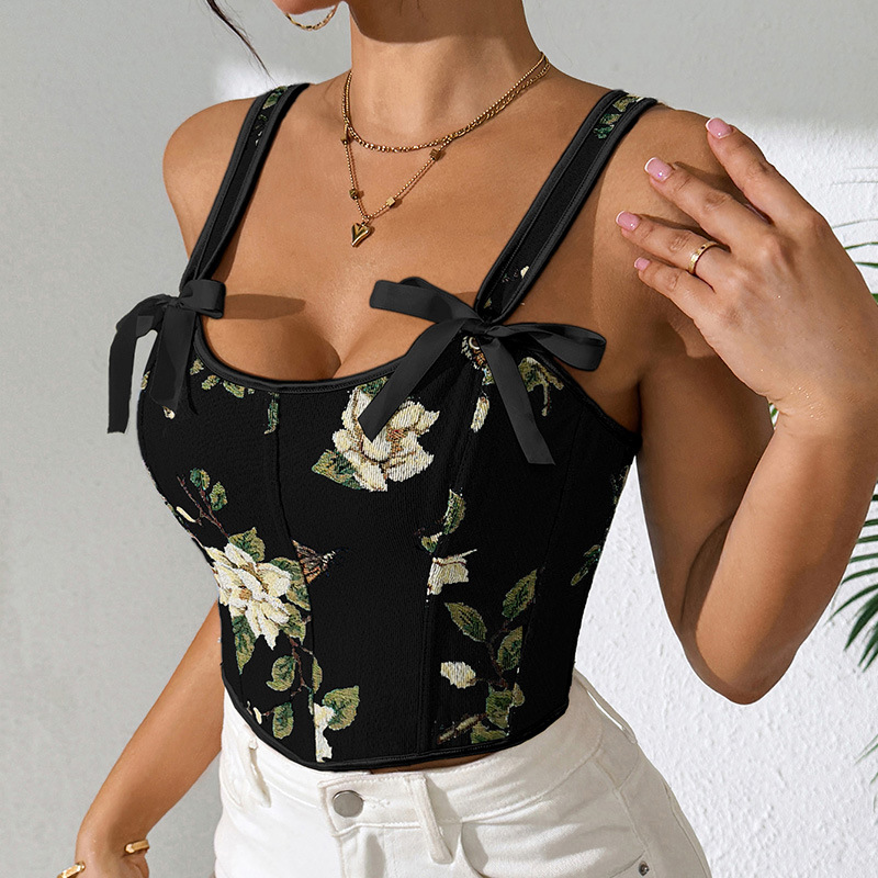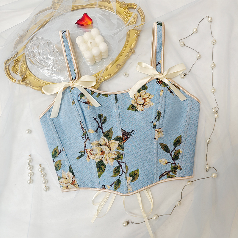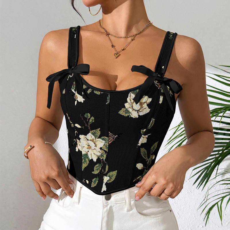 국경 간 핫 세일 프랑스 스타일 활 레이스 업 꽃 섹시한 셰이퍼 여성용 슬링 프린트 슬림 핏 조끼 코르셋