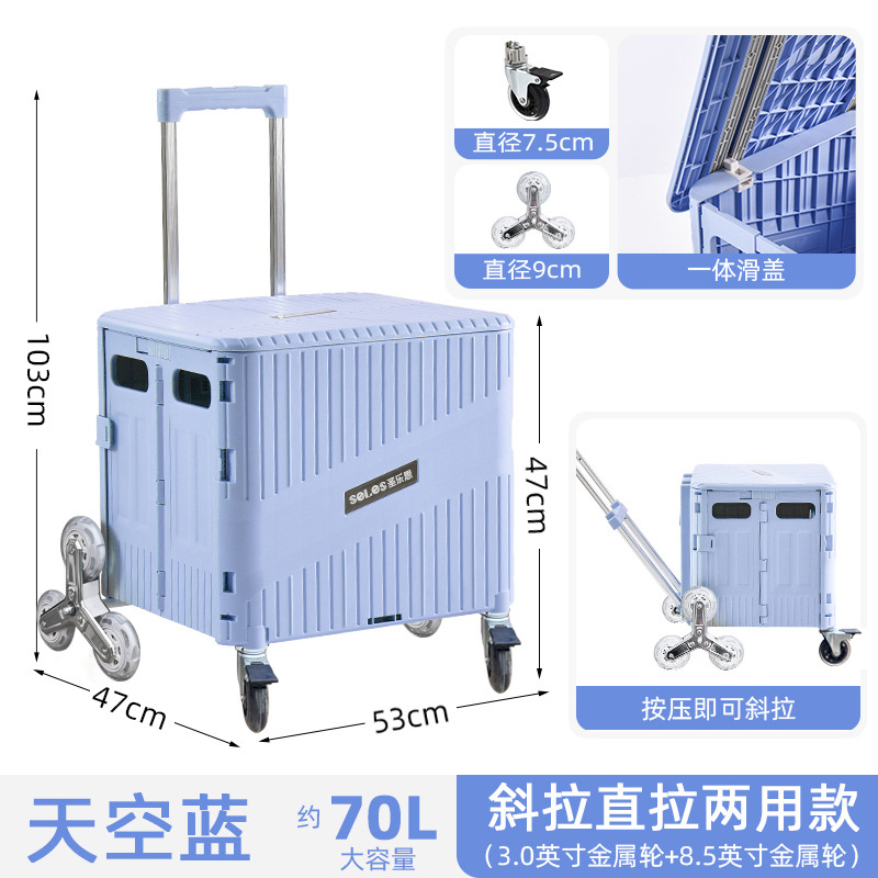 • 대형 [업그레이드된 경사 및 당김 겸용] 8.5inch 금속 사다리 휠 - 하늘색 - 브레이크 포함 저소음
