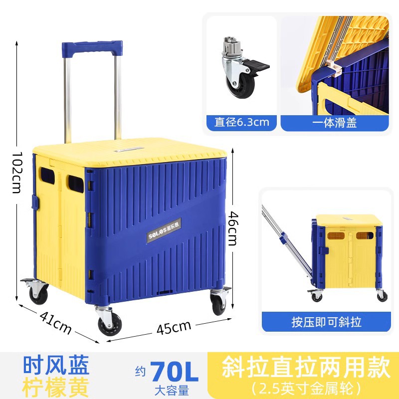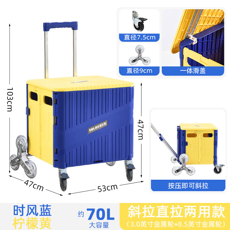 • 대형 [업그레이드된 경사 및 당김 겸용] 8.5inch 금속 사다리 휠 - 파란색 및 노란색 - 브레이크 포함 조용함