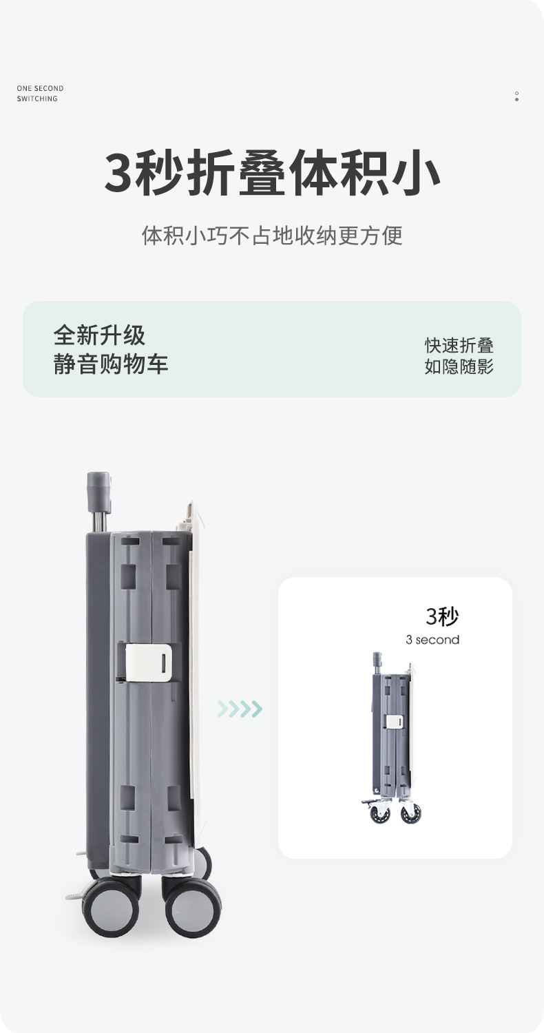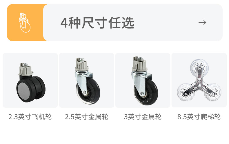 • 대형 [사선 당김 겸용 업그레이드 모델] 2.3inch 항공기 범용 휠 - 스페이스 그레이, 저소음, 브레이크 포함