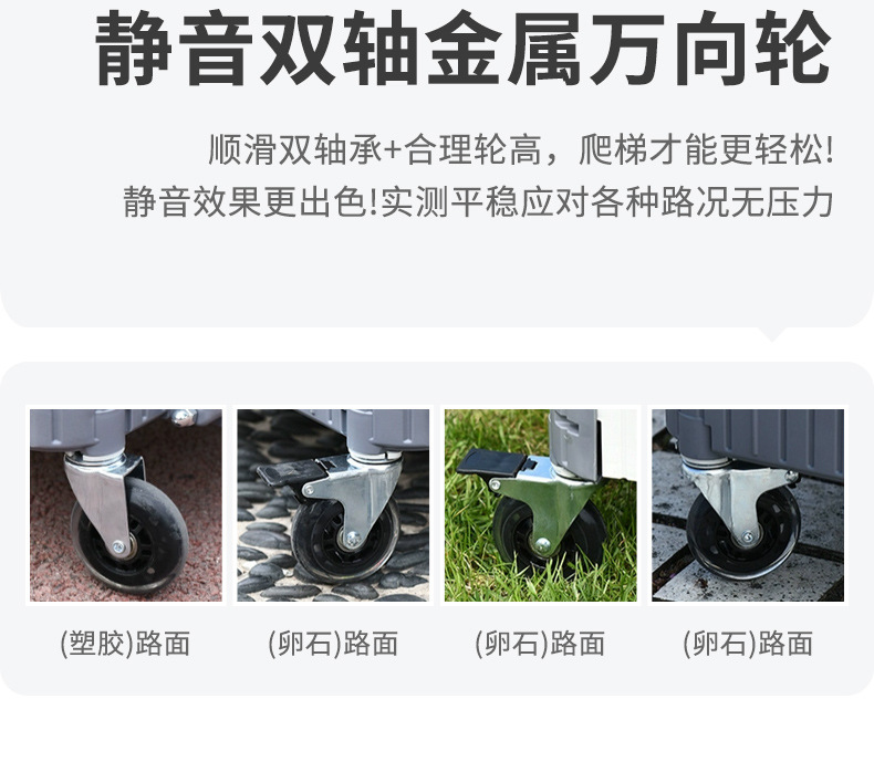 • 대형 [업그레이드된 경사 및 당김 겸용] 8.5inch 금속 사다리 휠 - 스페이스 그레이 - 브레이크 포함 저소음