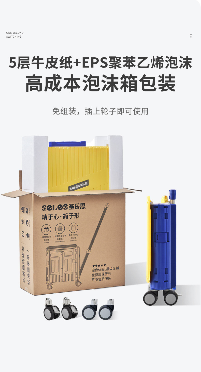 • 대형 [사선 당김 및 이중 사용을 위한 업그레이드된 모델] 2.3inch 항공기 범용 휠 - 파란색 및 노란색 - 브레이크 포함 저소음
