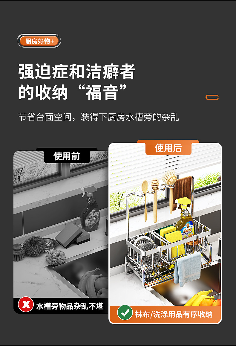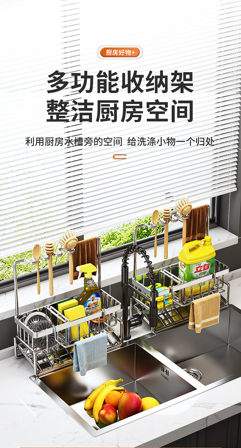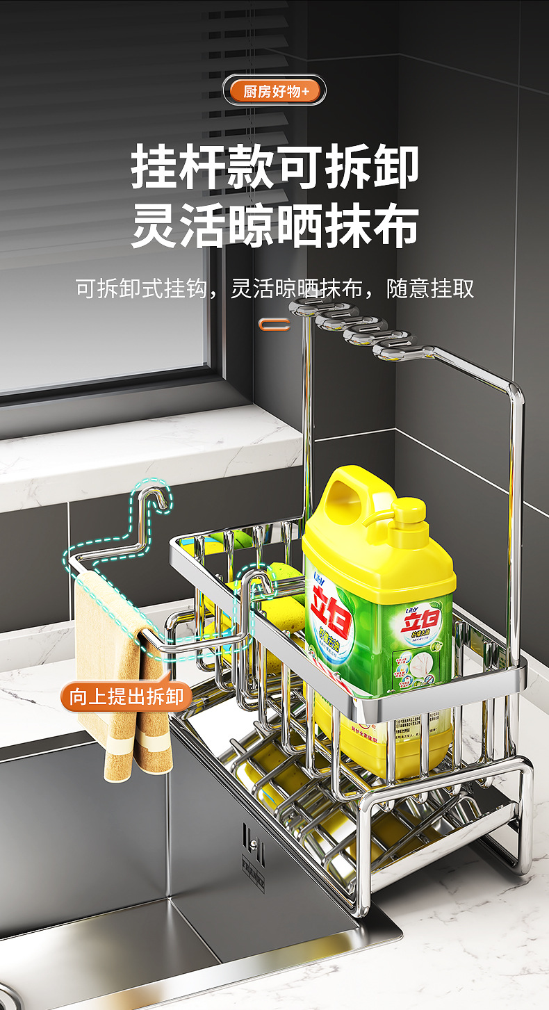 주방용품 신제품 싱크대 수납 배수대 선반 식기세척용품 스틸 와이어 스펀지 걸레걸이 도매