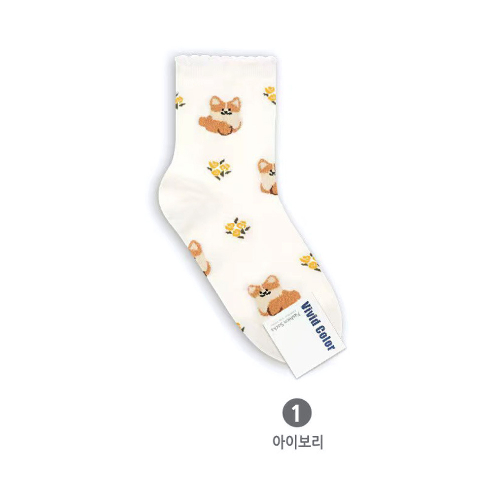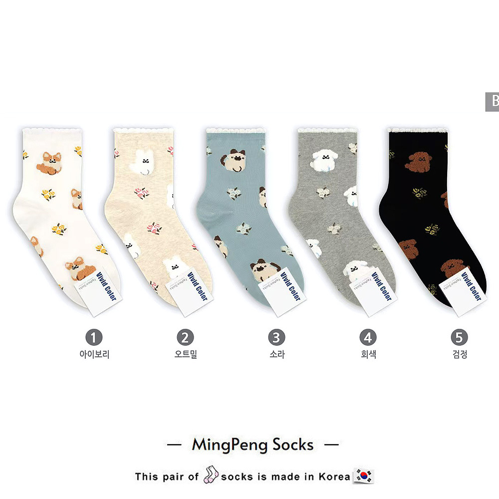 한국 양말 동대문 생생한 가을 새 만화 강아지 여성 중간 튜브 면 양말 캐주얼 여성 양말 학생 양말스토어 가기