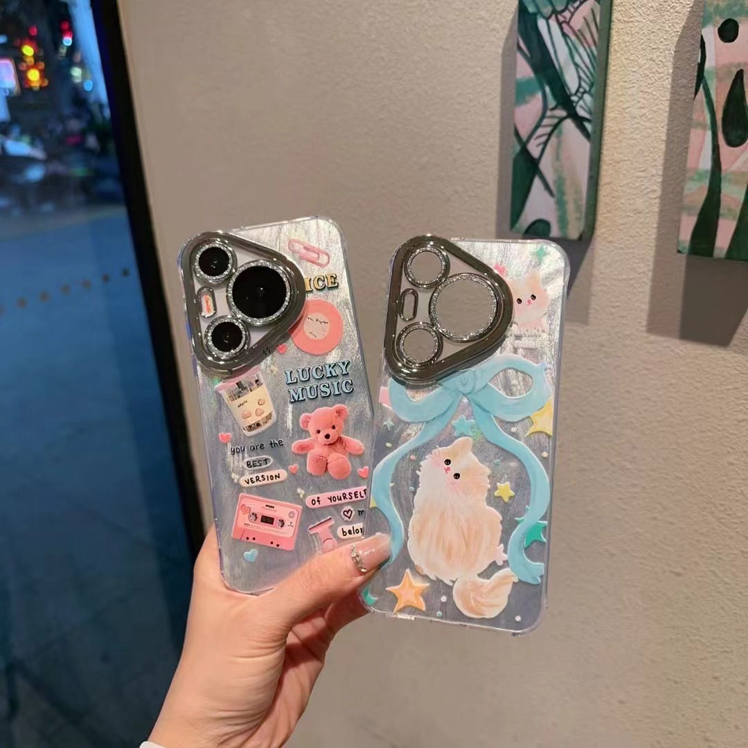 화웨이 반짝이 깃털망사 만화 케이스, 화웨이 Honor 500 인기 폭발 전기도금 귀여운 휴대폰 케이스 (렌즈 필름 포함)스토어 가기