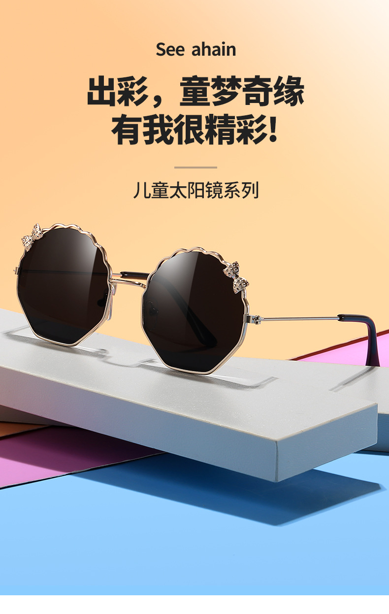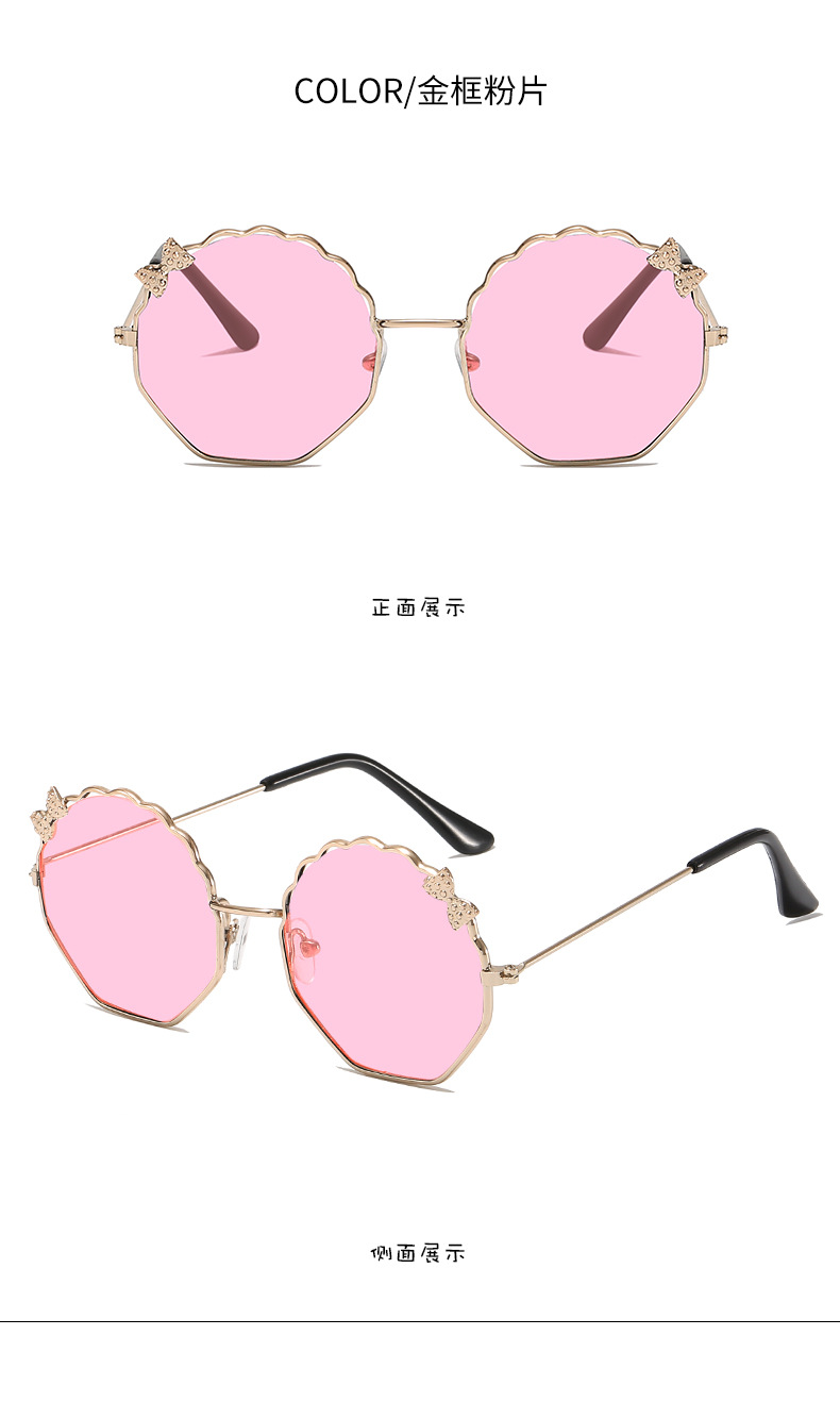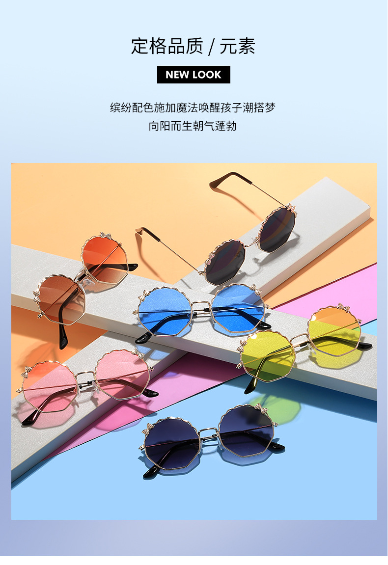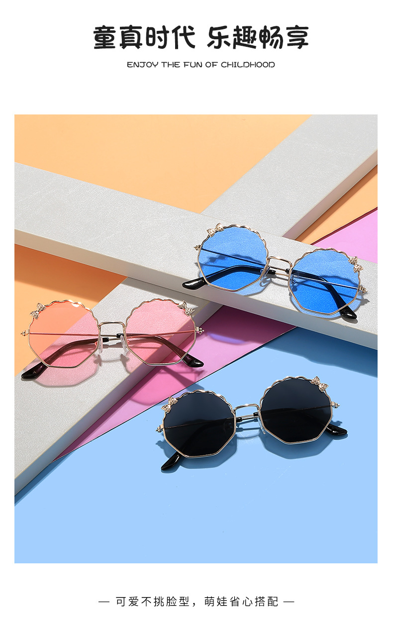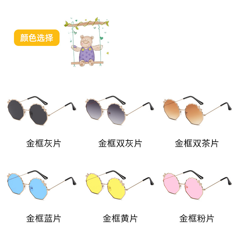 새로운 금속 활 어린이 선글라스 다각형 한국 스타일 선글라스 귀여운 사탕 안경스토어 가기
