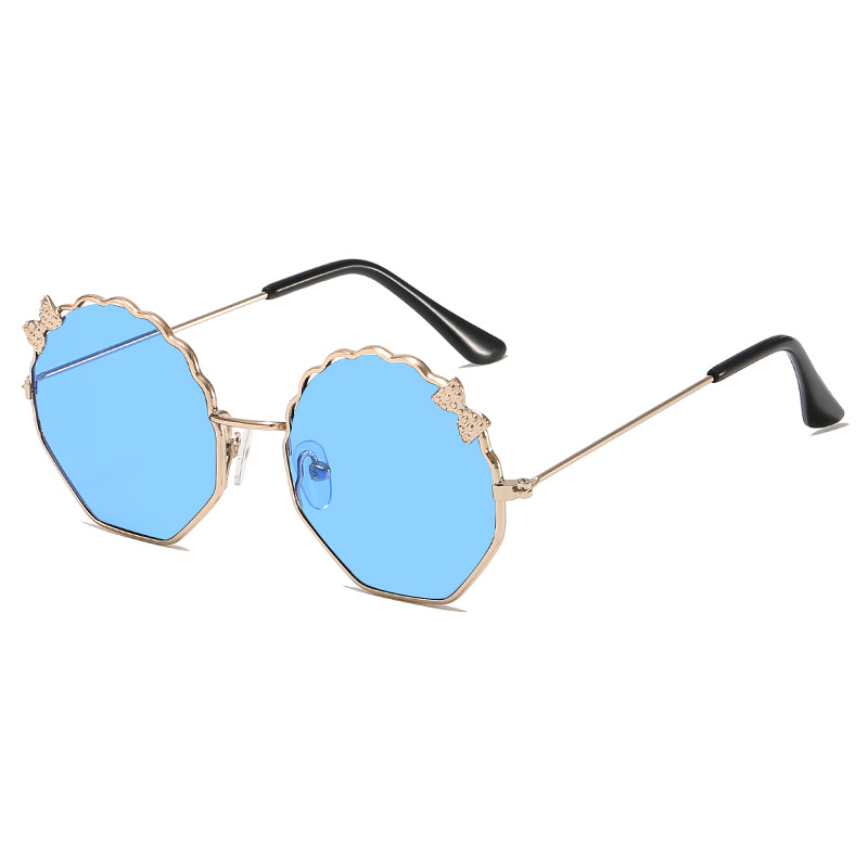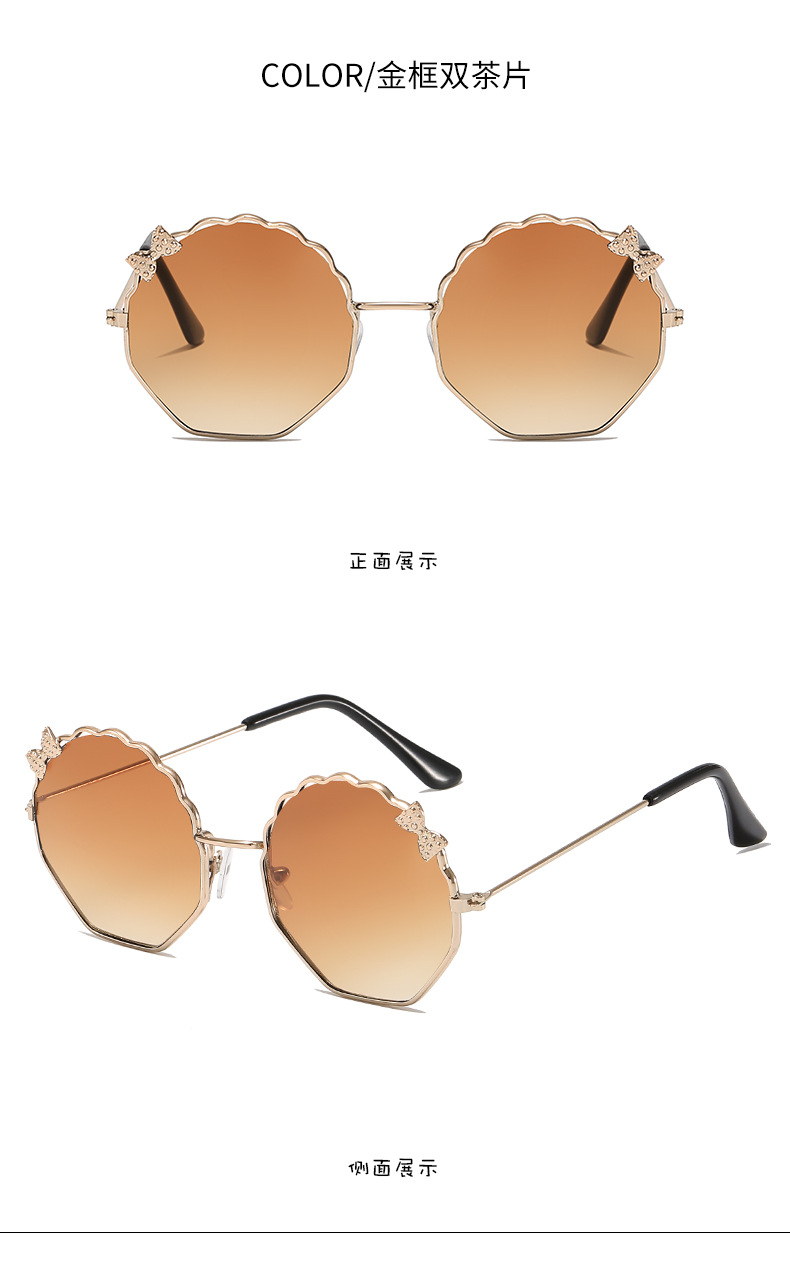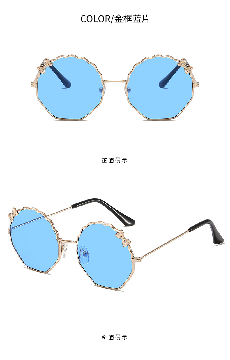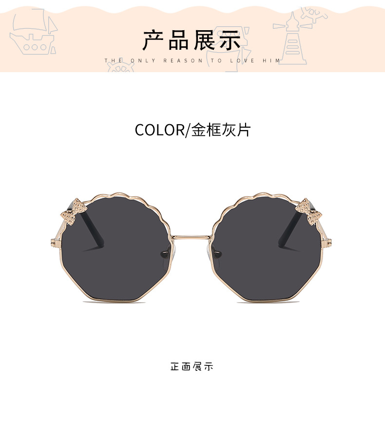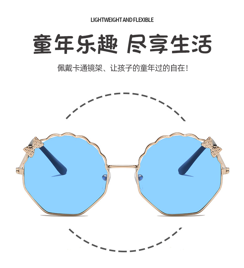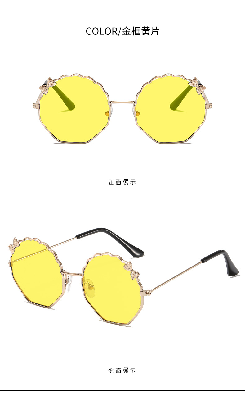 새로운 금속 활 어린이 선글라스 다각형 한국 스타일 선글라스 귀여운 사탕 안경스토어 가기